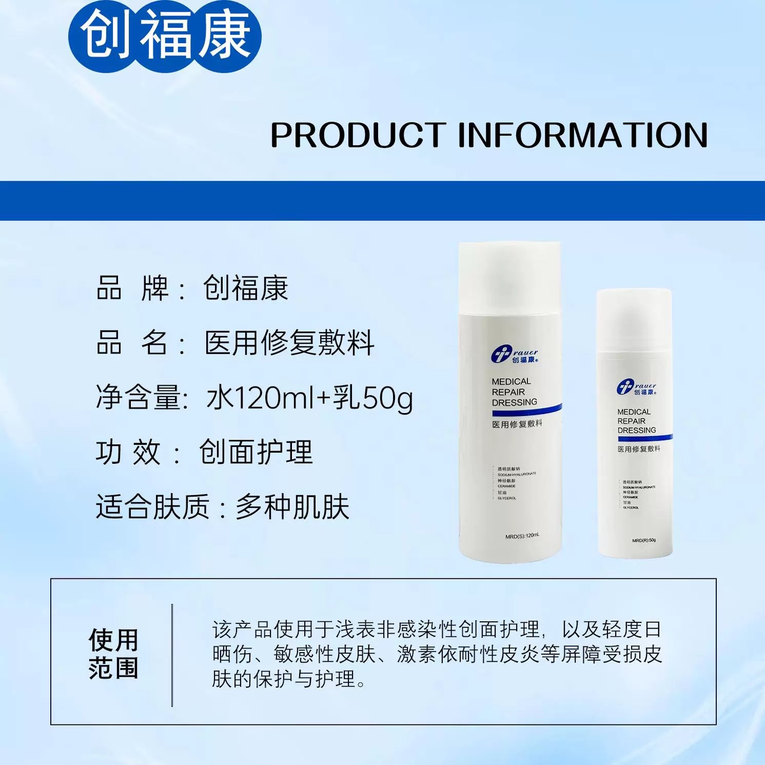 創福康院線修復機器用ブランド水120ml、乳液50g、スプレー100g、ジェル30g