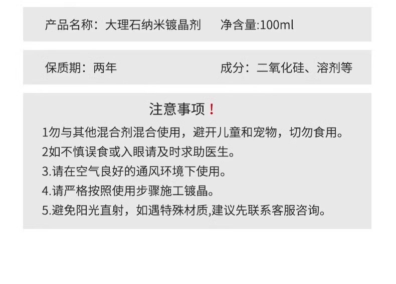 石材镀晶剂大理石英石台面翻新瓷砖腐蚀修复除划痕返碱增亮剂结晶