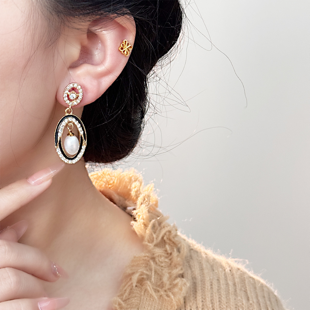 国境を越えた新しいイミテーションパールリボンイヤリングヨーロッパとアメリカのレトロファッションインターネットセレブ人気のライト高級ハイエンドイヤリング女性用