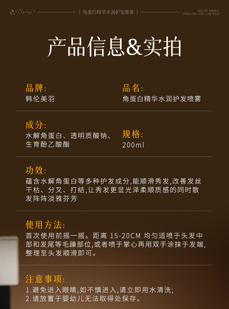 韩伦美羽角蛋白水光护发喷雾改善干枯毛躁修护烫染发质水厂家代发