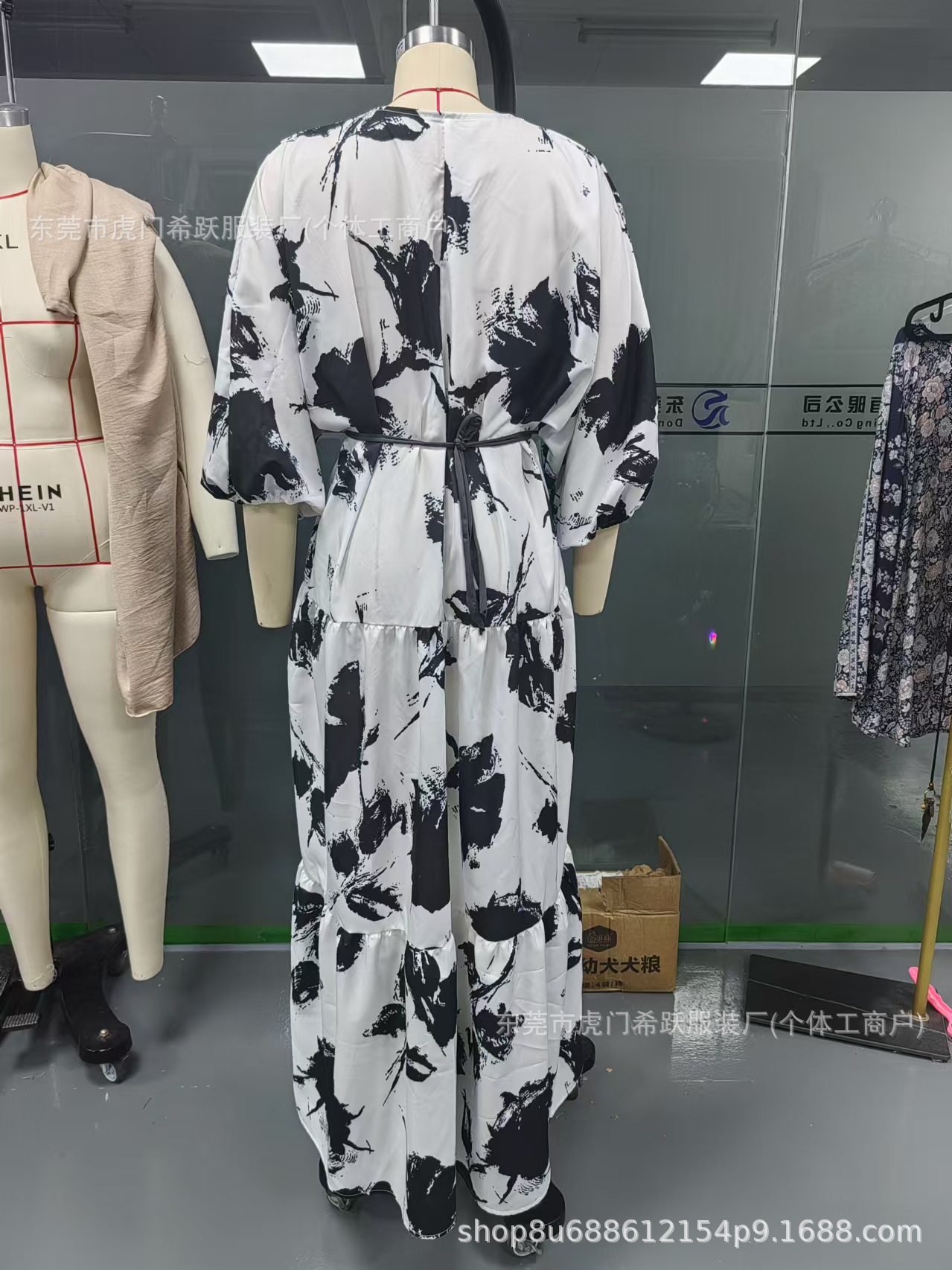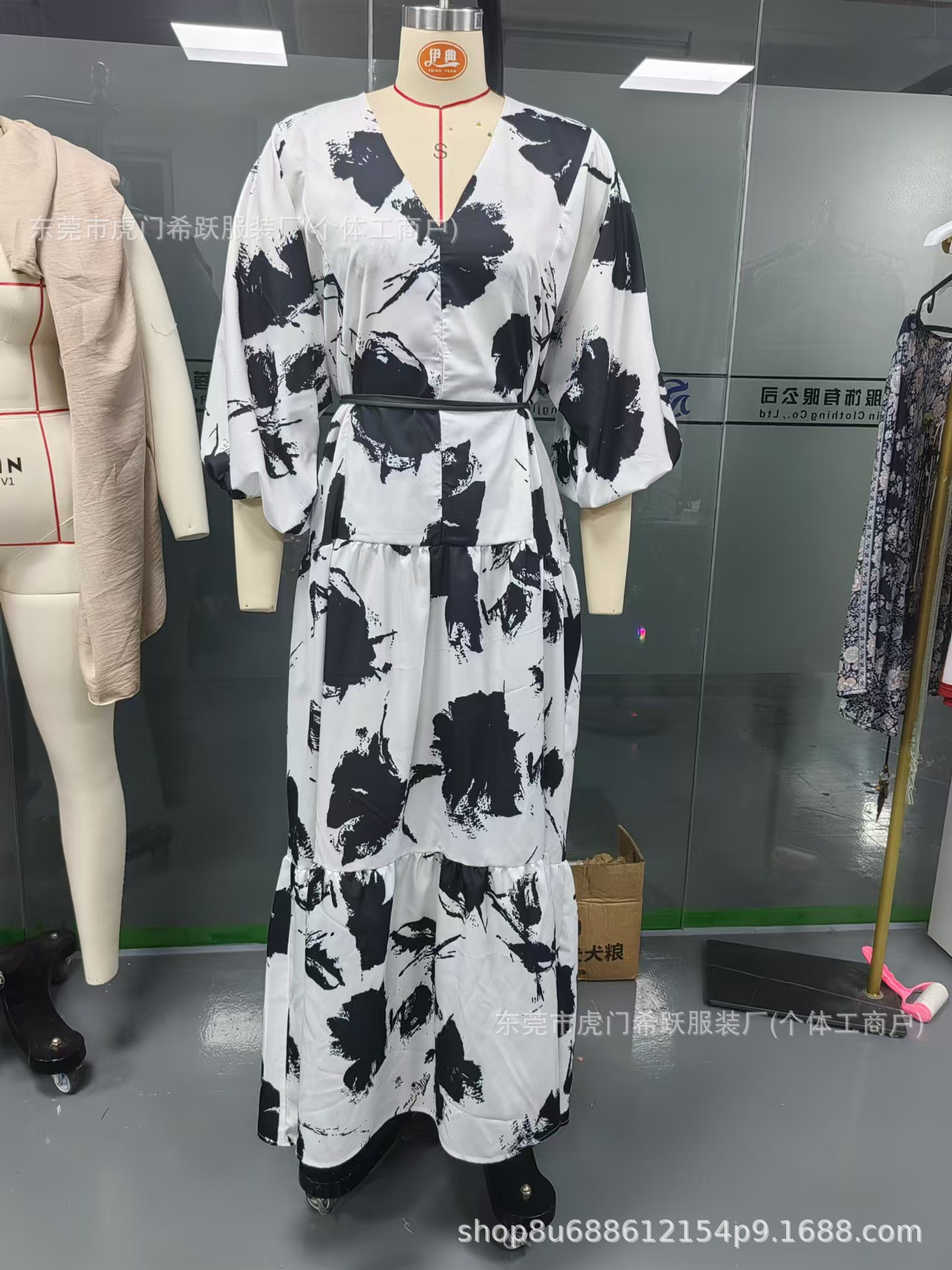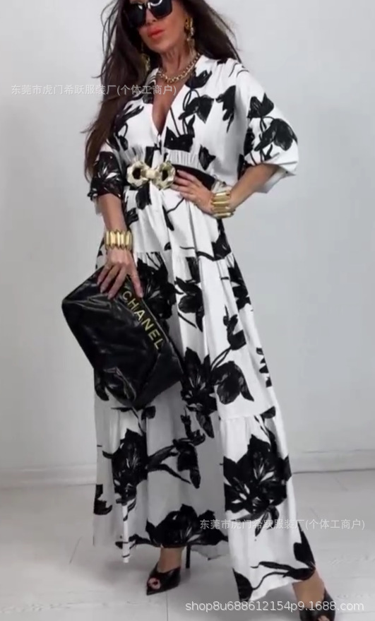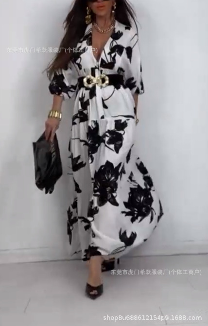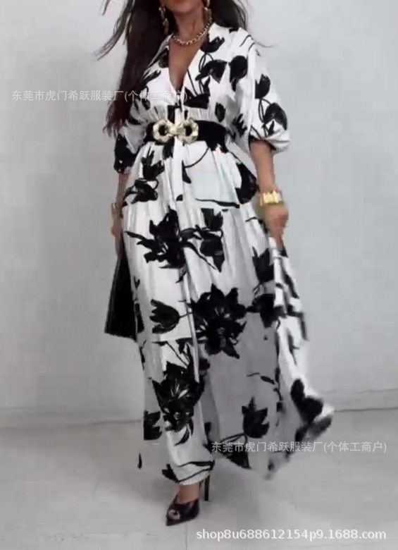 2025 新しいクロスボーダーヨーロッパとアメリカのアマゾン独立ステーションファッションハーフオープンカラーセブンツリムスリーブファッションカジュアルドレス