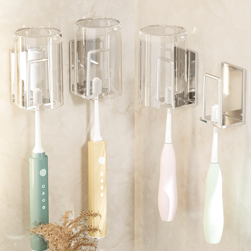 パンチングなしのクロスボーダー歯ブラシラック、ステンレス製のバスルームヘアドライヤーホルダー、バスルーム壁掛け歯ブラシカップ収納