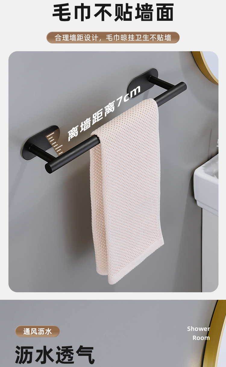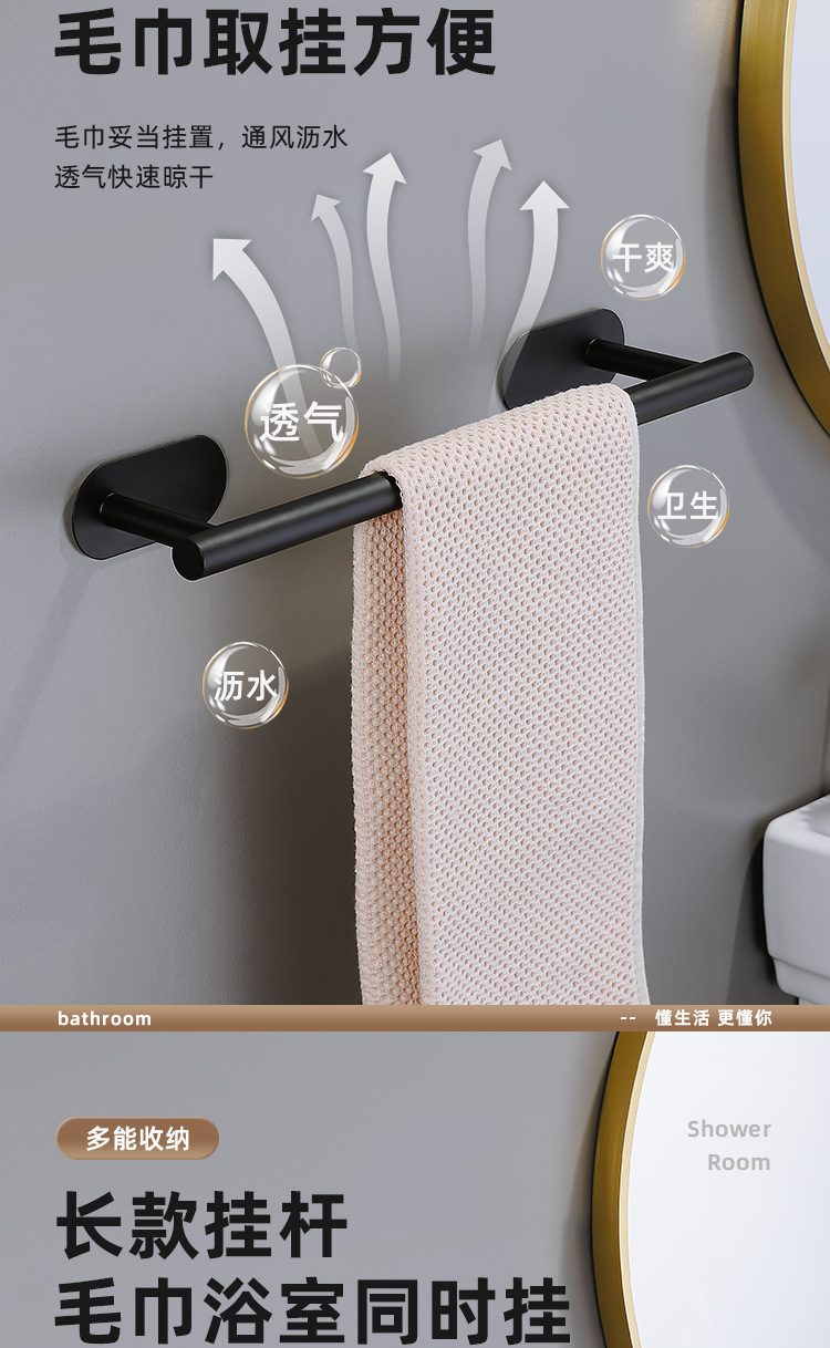 吸盘毛巾架卫生间免打孔浴室毛巾杆浴巾壁挂置物架收纳挂架单双杆