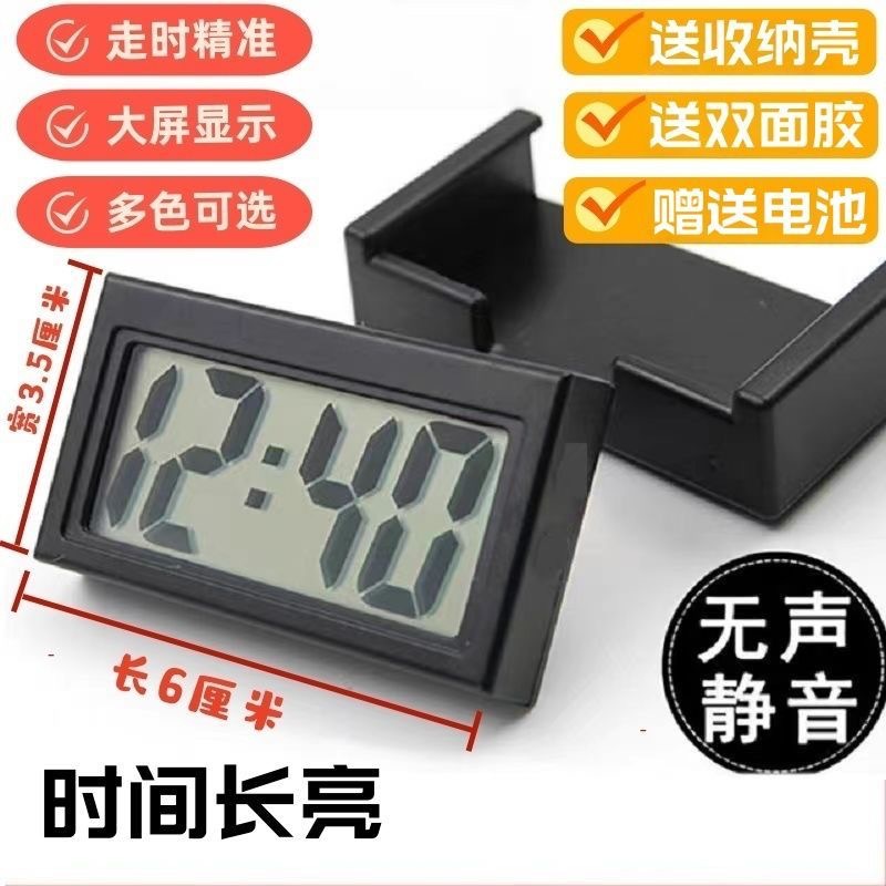 车载电子时钟迷你电子表静音小台钟送收纳壳双面胶车用家一件代发