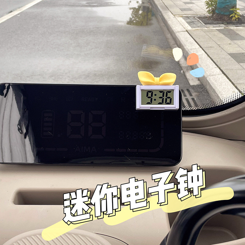 少女心车载迷你电子表粘贴车载时钟三轮车电子表简约大数字车表