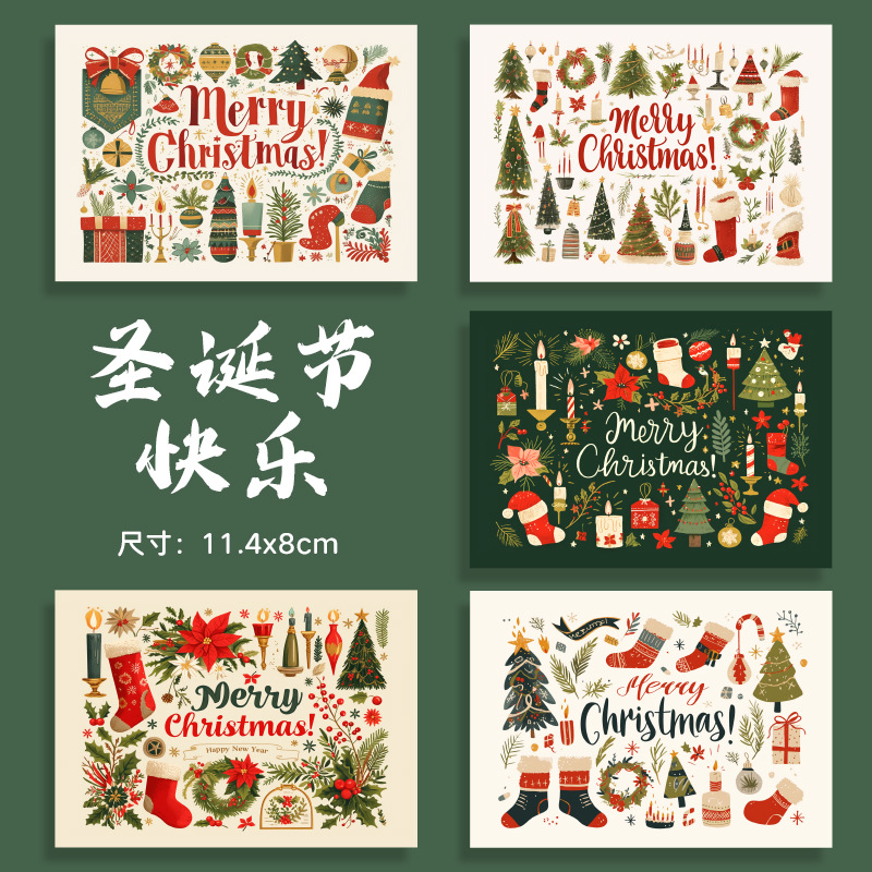 越境アマゾン クリスマス グリーティングカード 手書き感謝メッセージカード ギフトデコレーション 小さなカード 英語版