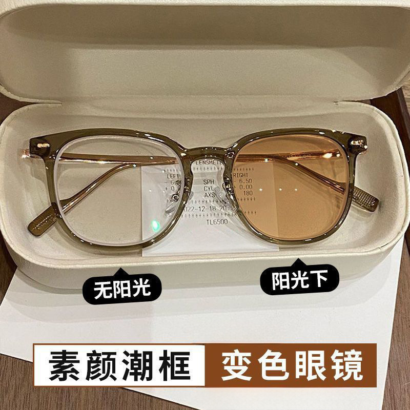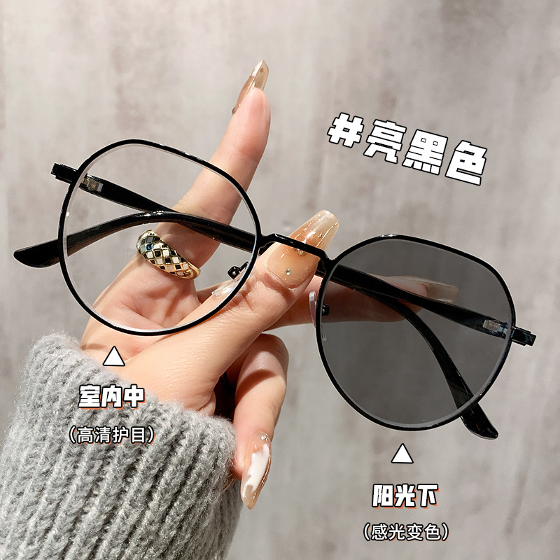 変色平光眼鏡男性モデルは度数がかっこいい紫外線防止円枠眼鏡高颜値サングラス女性潮