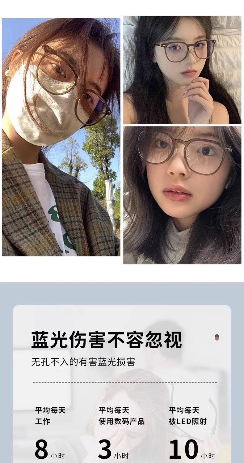 日常通勤素颜黒枠メガネins高颜値減齢防止ブルーレイ高精細近視は平光フレームを配合できます。