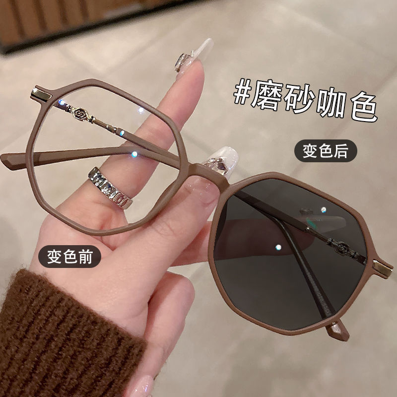 新型大枠感光変色近視メガネ素顔多角形光学メガネ超軽量女子四角いメガネフレーム