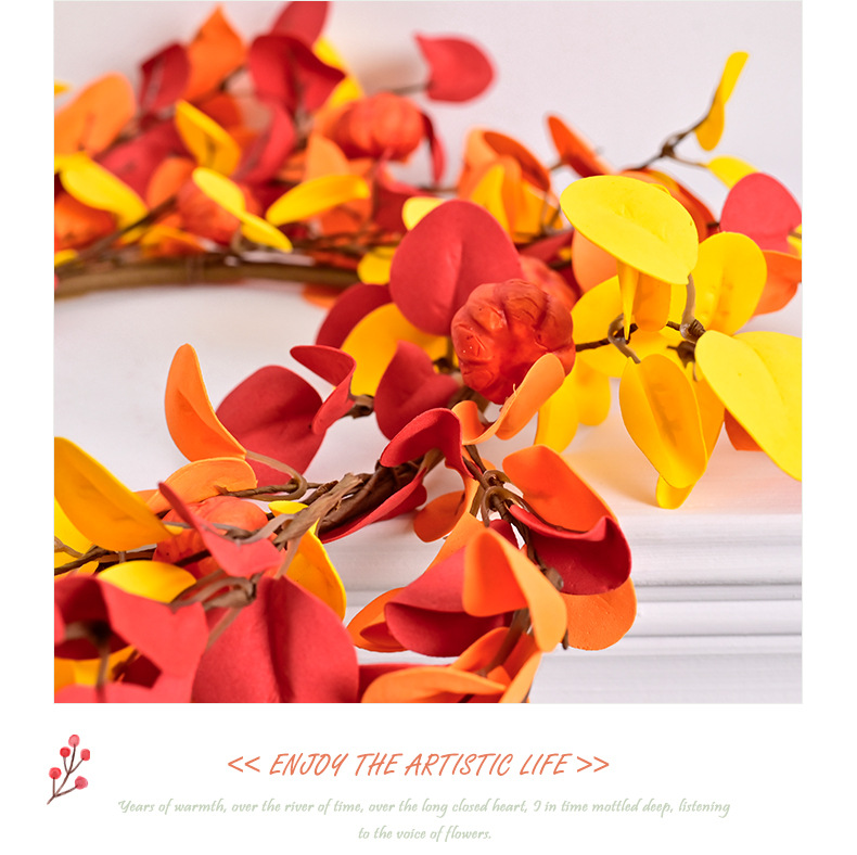 感謝祭の収穫カボチャガーランドシミュレーションユーカリマルチカラーPE葉装飾ウィンドウ吊り下げパーティーデコレーションガーランド