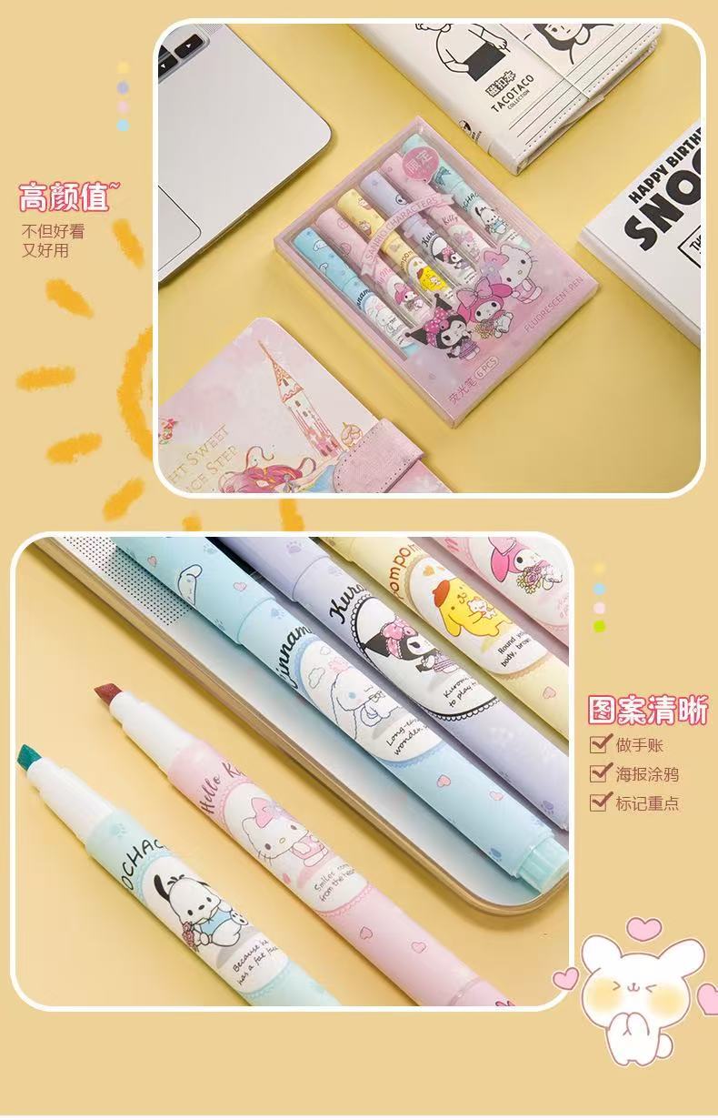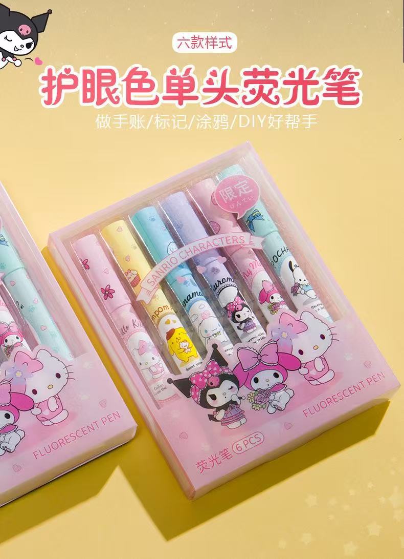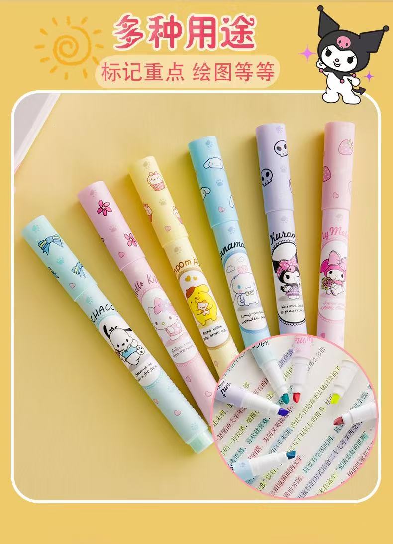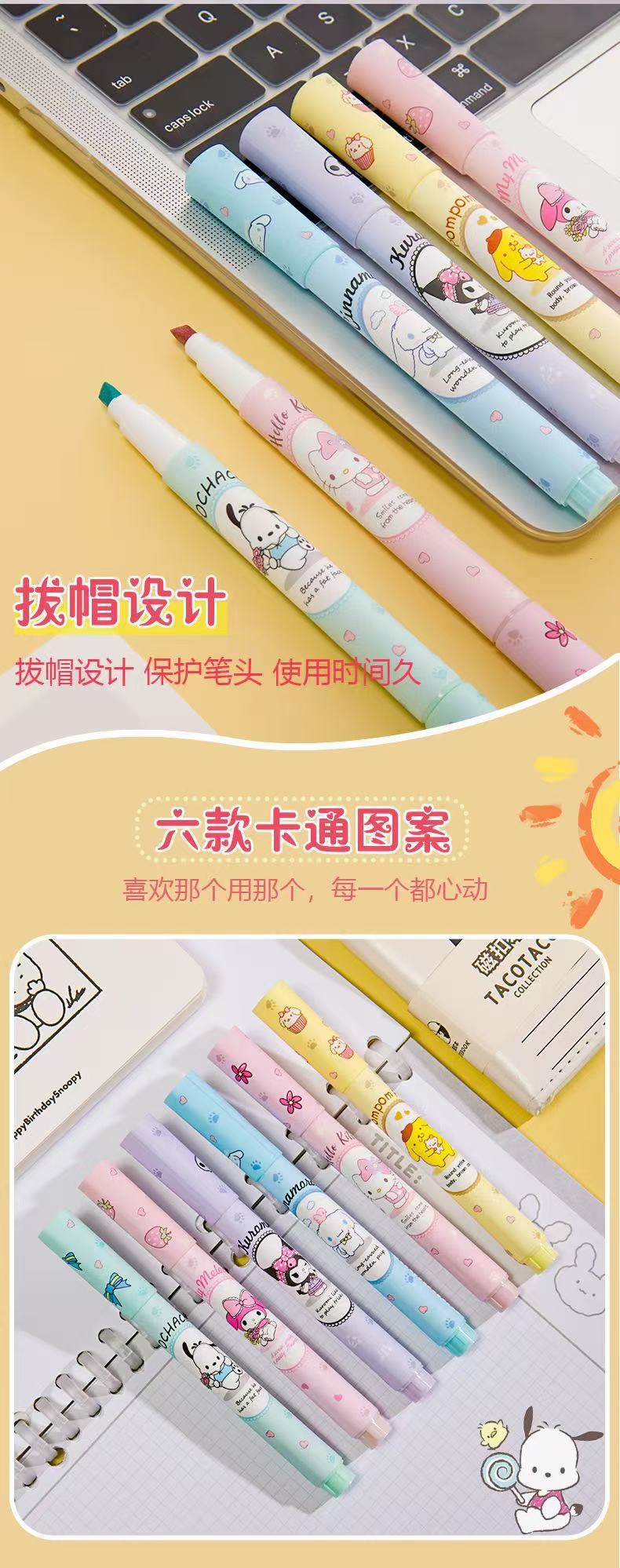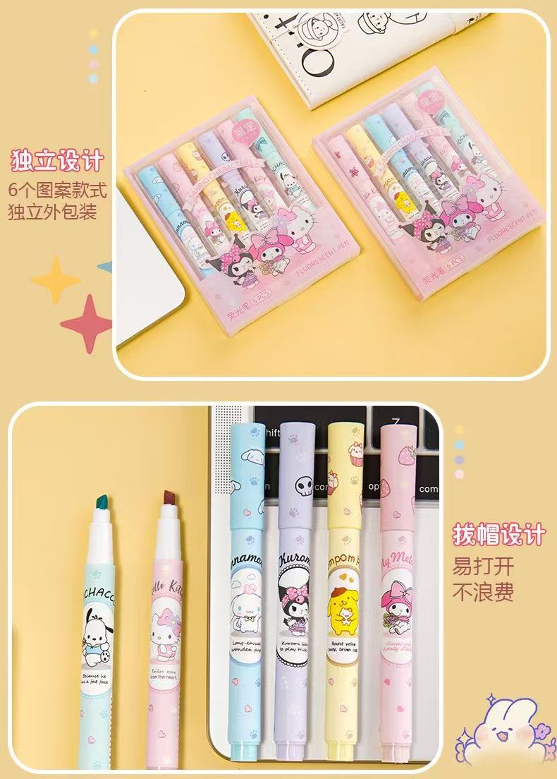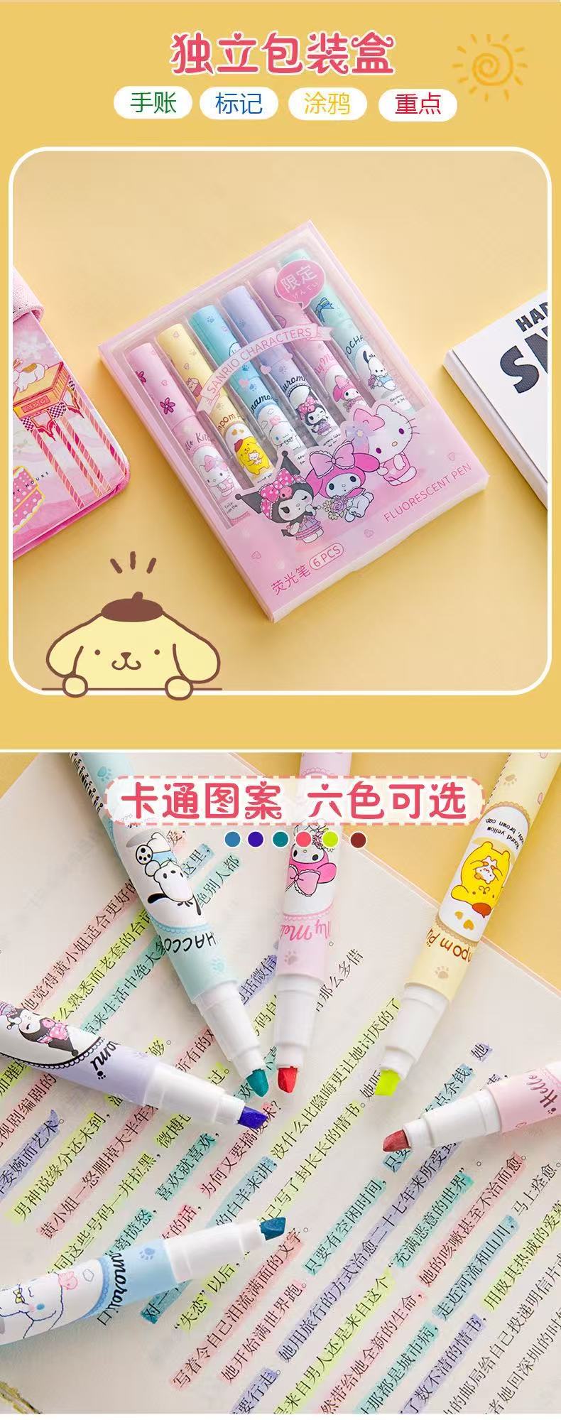 かわいいサンリオ蛍光ペン6本箱入り高颜値カラーペン多机能クロミ少女心蛍光ペン