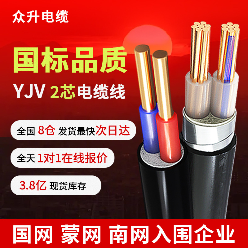 Yjvケーブル国標純銅2芯2.5 4 6 10 16 25 35 70 95 120平方電線
