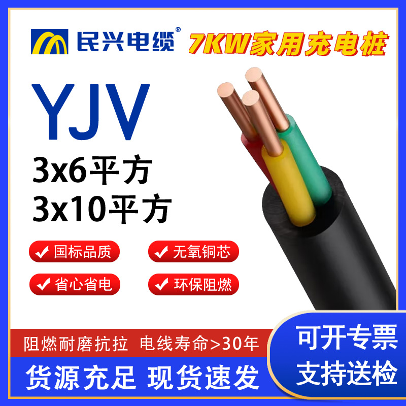 民兴ZC-YJV 6平方国标铜芯线充电桩7kw家用新能源汽车户外延长线