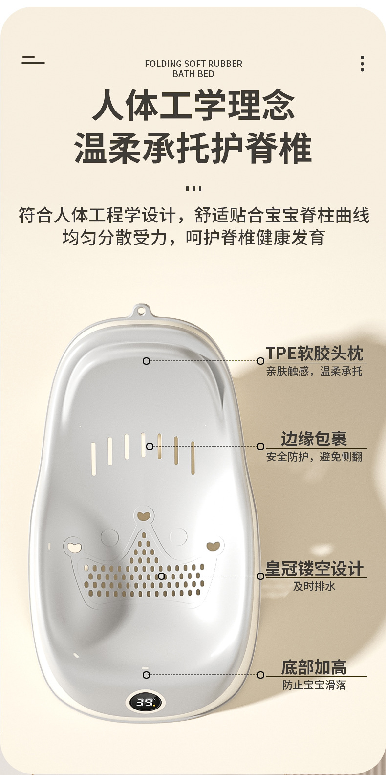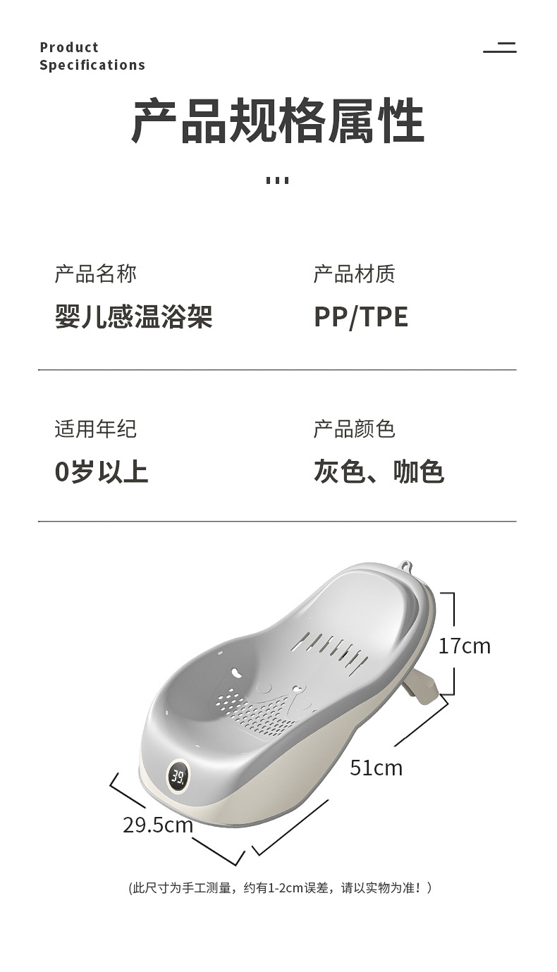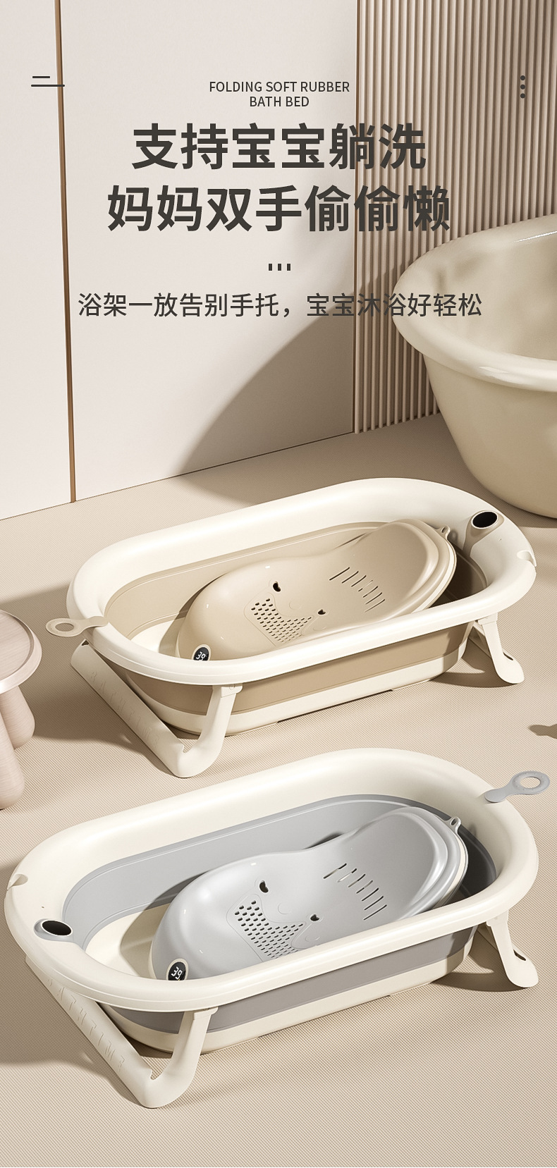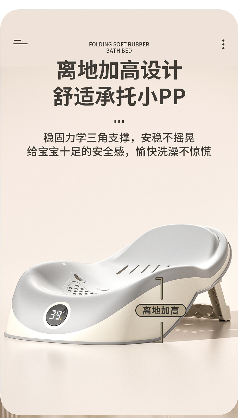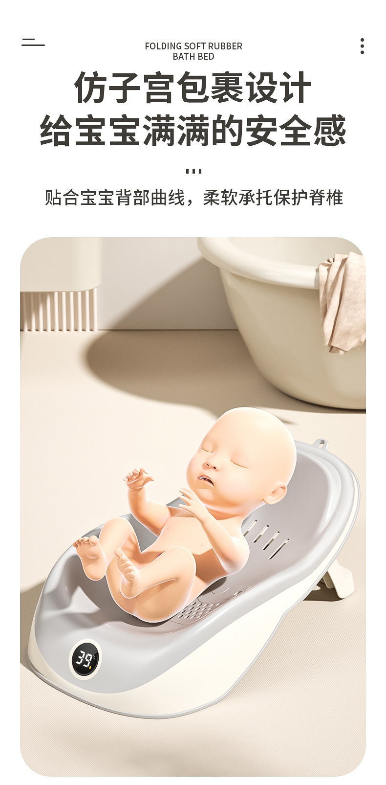 感温婴儿洗澡盆家用浴室防滑坐躺托神器浴架家用宝宝折叠舒适浴盆