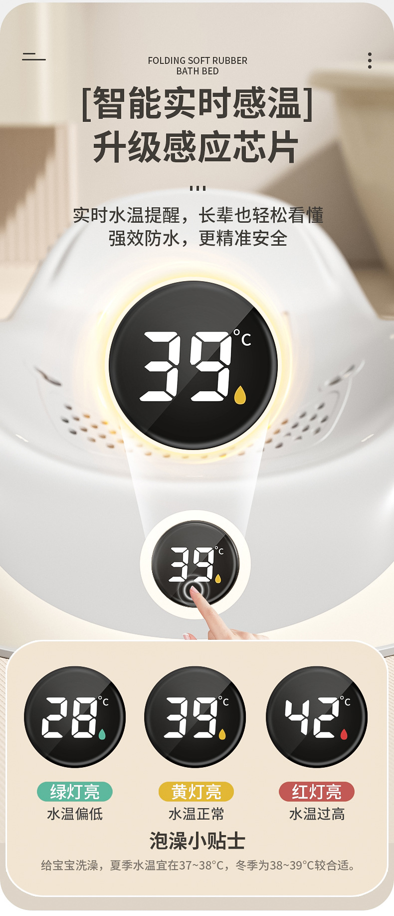 婴儿洗澡盆大号折叠易收纳带感温儿童洗澡盆可躺可坐防滑婴儿浴盆