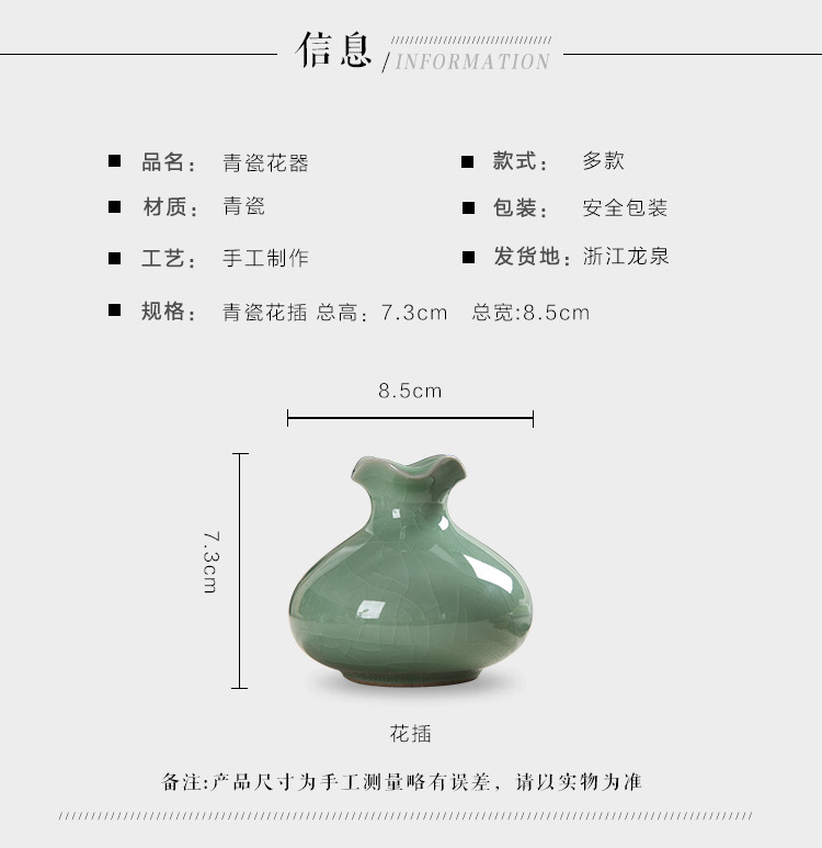 卸売龍泉青磁クリエイティブホームデコレーション装飾品手作りパーソナライズされた小さな花器カウンタートップ水耕フラワーアレンジメント花瓶