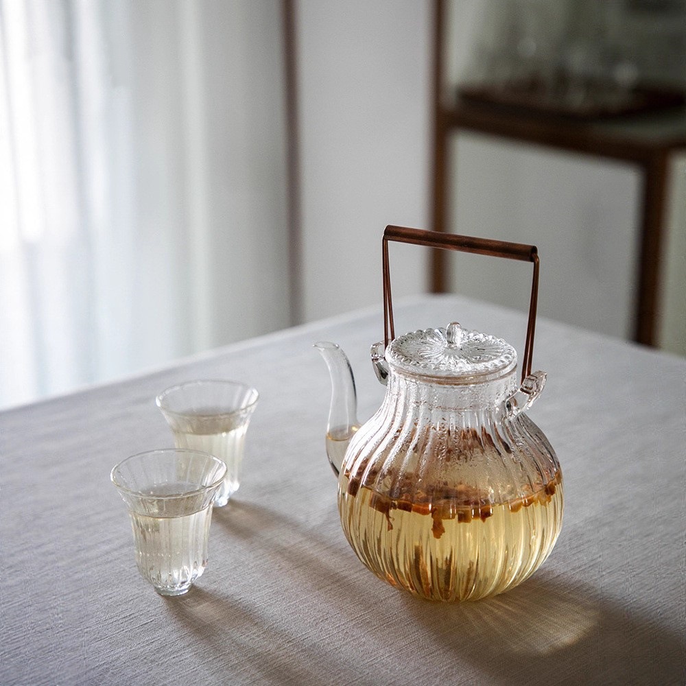 日式手工耐热玻璃花茶壶泡茶壶烧水壶电陶炉提梁壶菊瓣壶煮茶家用