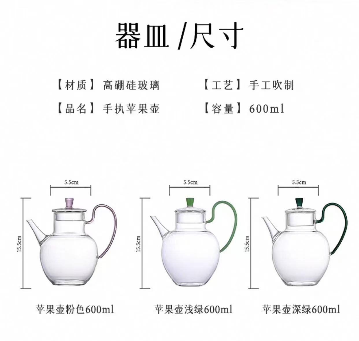 颜色 (浅粉把)小苹果壶400ml,(湖绿把)小苹果壶400ml,(绿玉把)小苹果壶400ml,(浅粉把)大苹果壶600ml,(湖绿把)大苹果壶600ml,(绿玉把)大苹果壶600ml,(加厚)四叶草品杯50ml