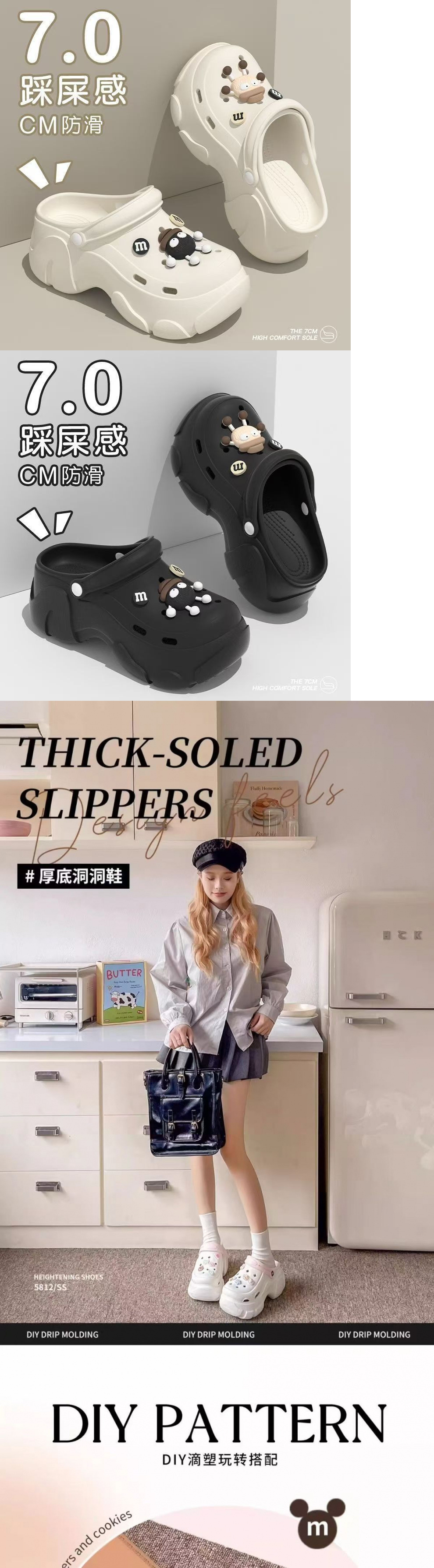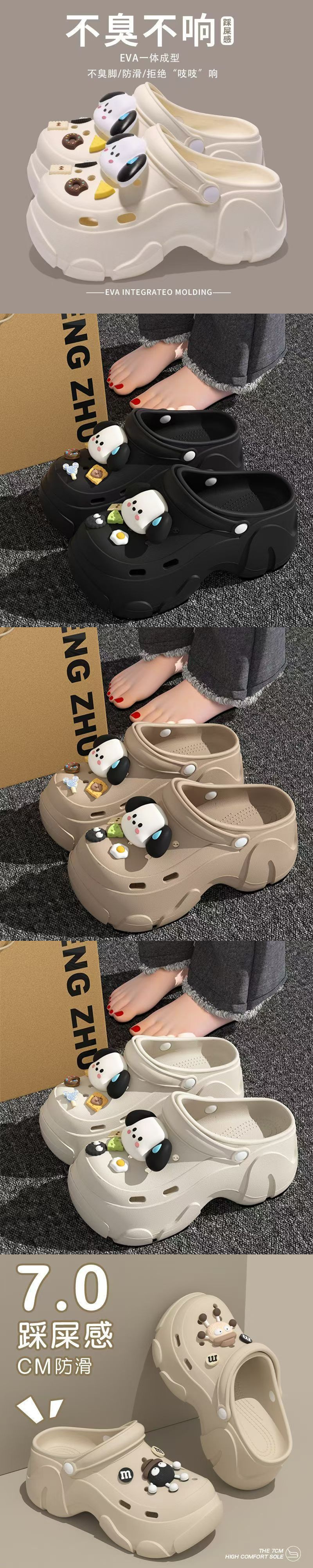 厚底下駄女性用夏アウター2024新スタイルビーチ滑り止めつま先ハーフスリッパ女性用