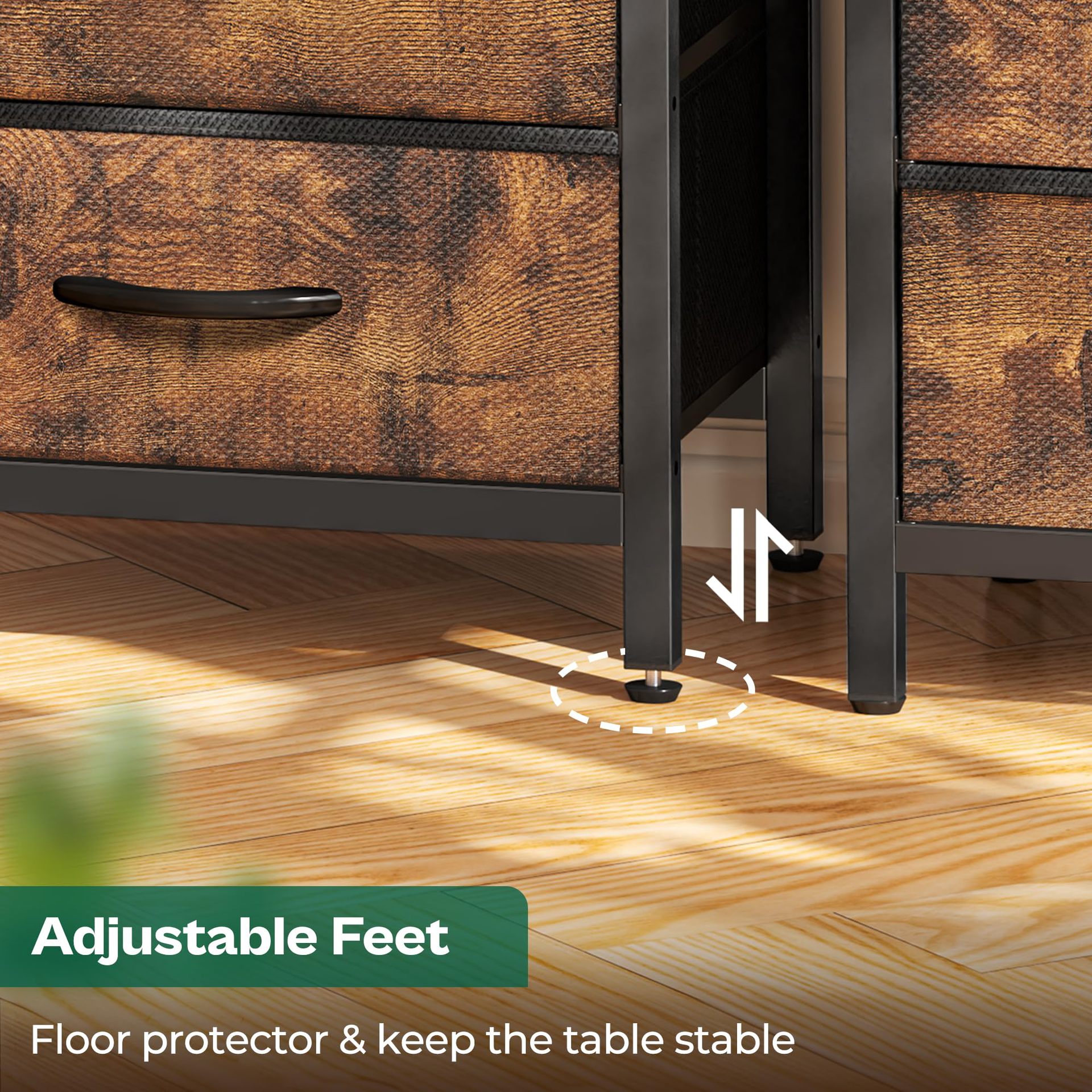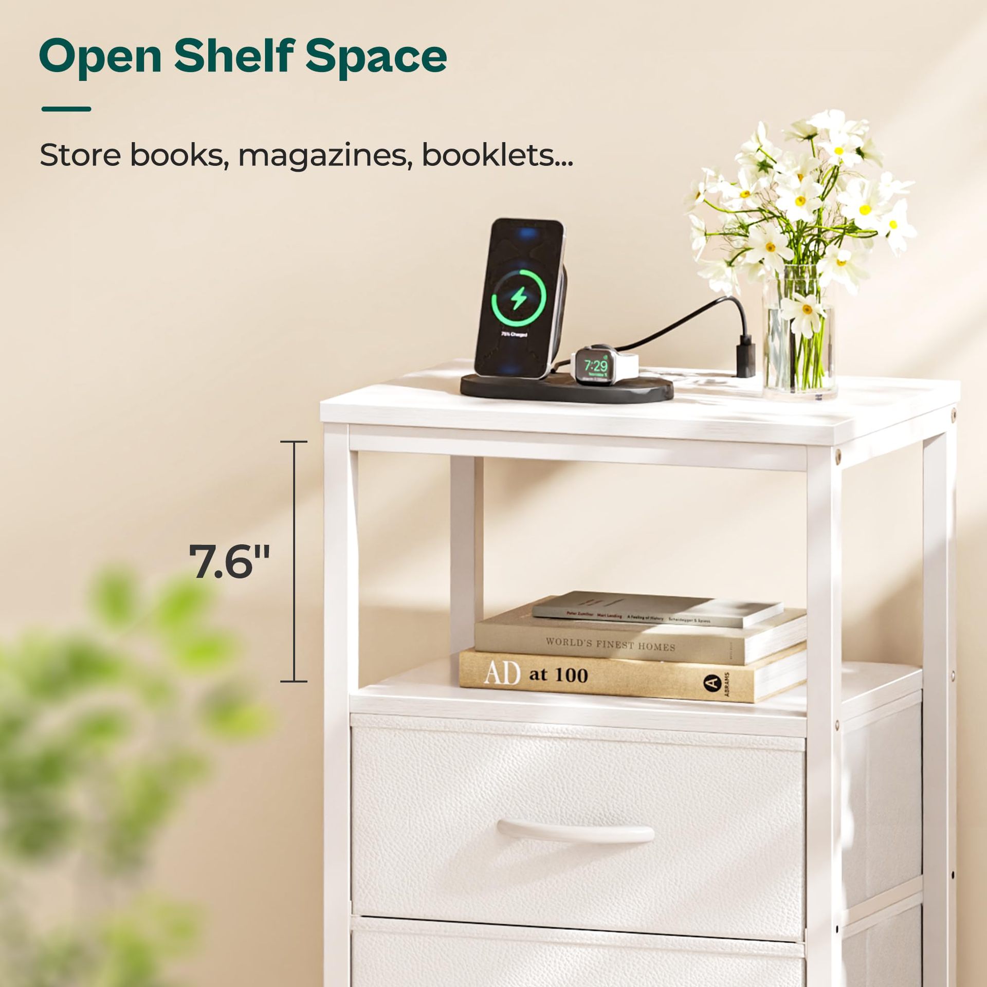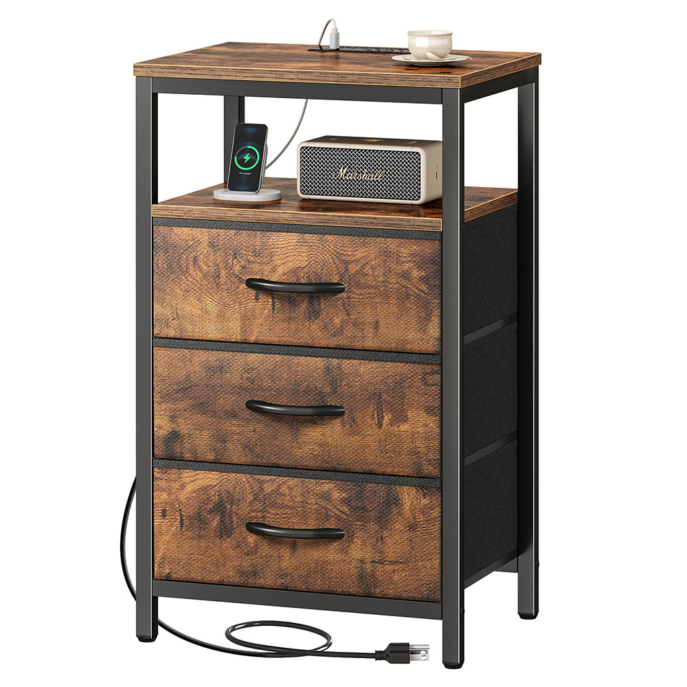 充電ステーション付きナイトスタンド、調節可能なファブリック引き出し付きベッドサイドテーブル、寝室用ナイトスタンド、リビングルーム用3段収納ナイトスタンドサイドテーブル