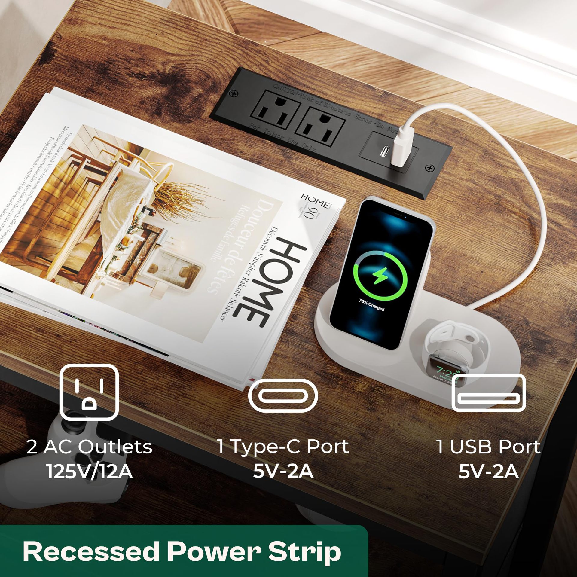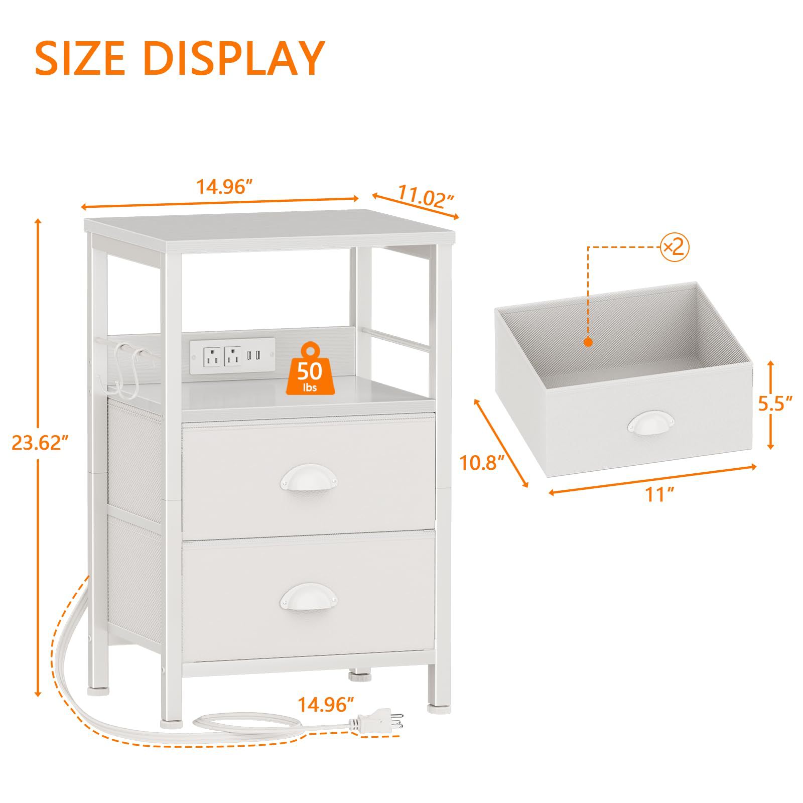 Nightstand with Charging Station, Bed Side Table w,ベッドサイドテーブル サイドテーブル コーヒーテーブル エンドテーブル ナイトスタンド ベッドサイドテーブル