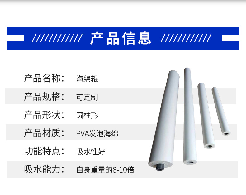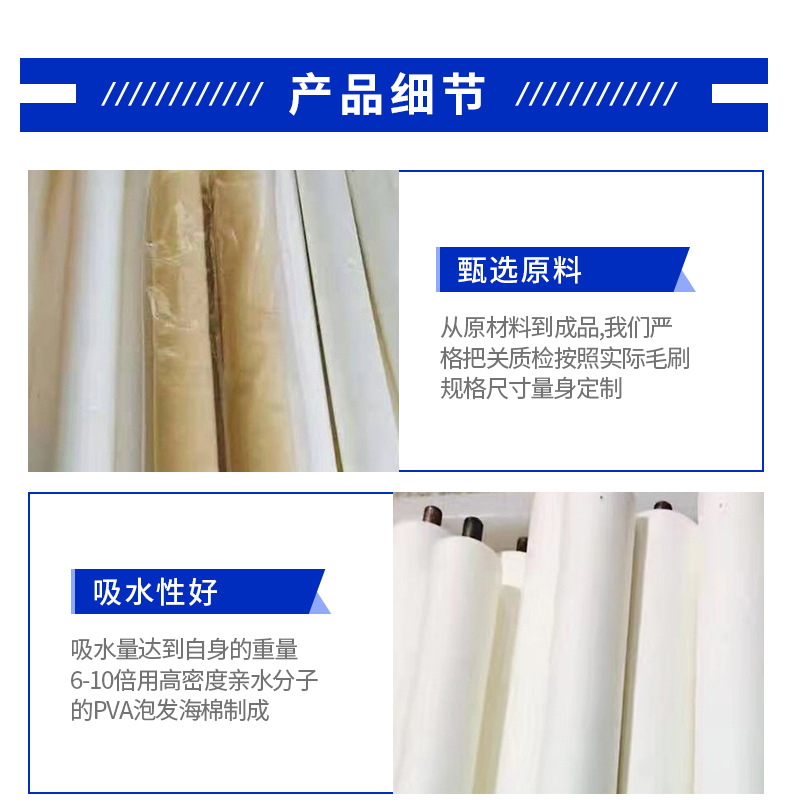 ガラス加工洗浄機製造に適した高密度PVA PP吸水・吸油スポンジローラーの製造・販売