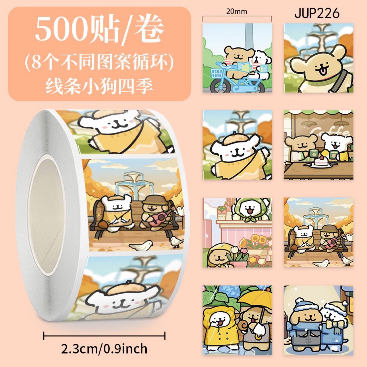 ストローク犬ステッカーロール漫画かわいい diy ハンドブック素材装飾粘着シールステッカーフィルムテープ