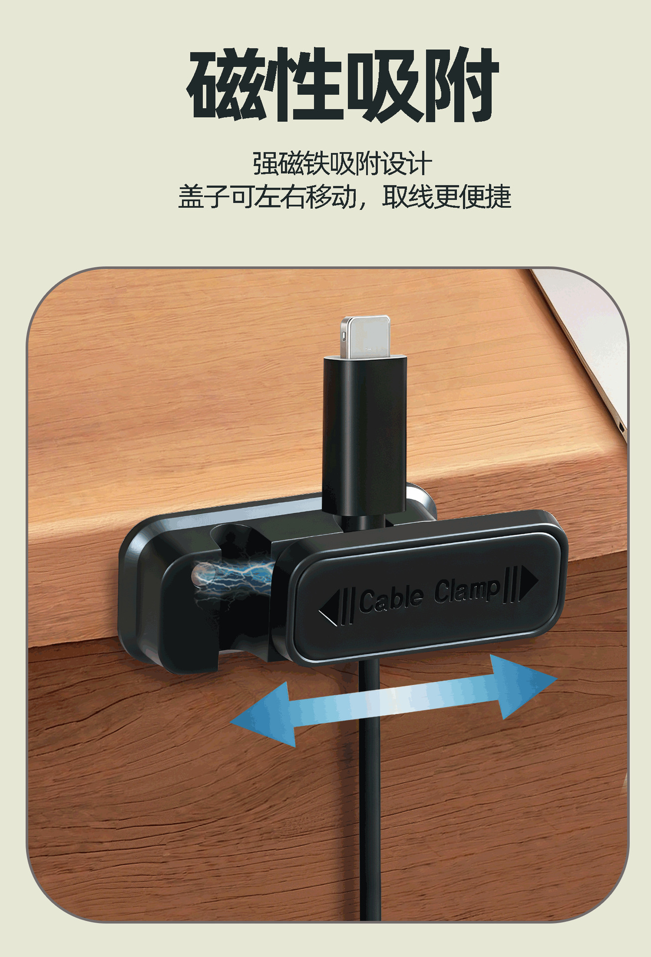 双孔磁吸理线器家用办公桌面充电数据线固定器壁挂式插排绕线卡扣