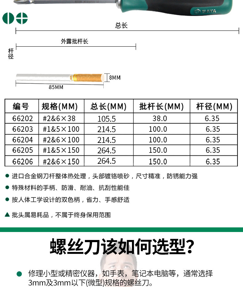 SATA世達一字十字ドライバー五金工具ドライバー62302精密工具修理工業