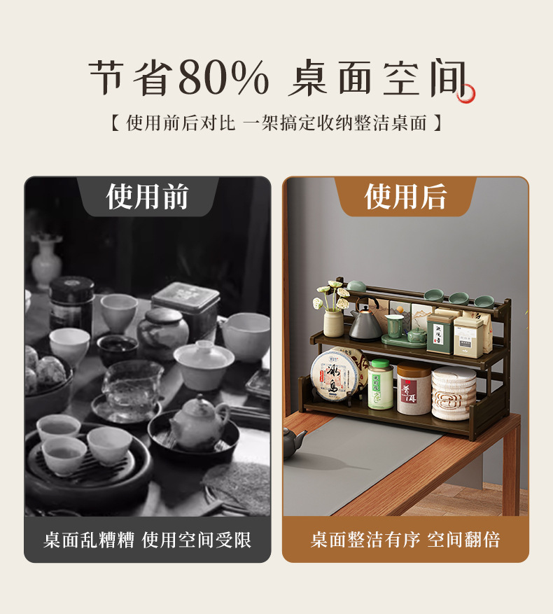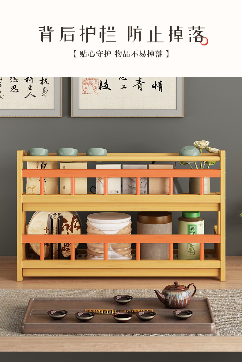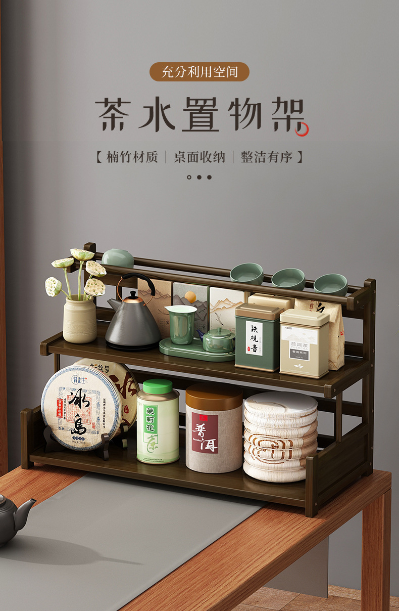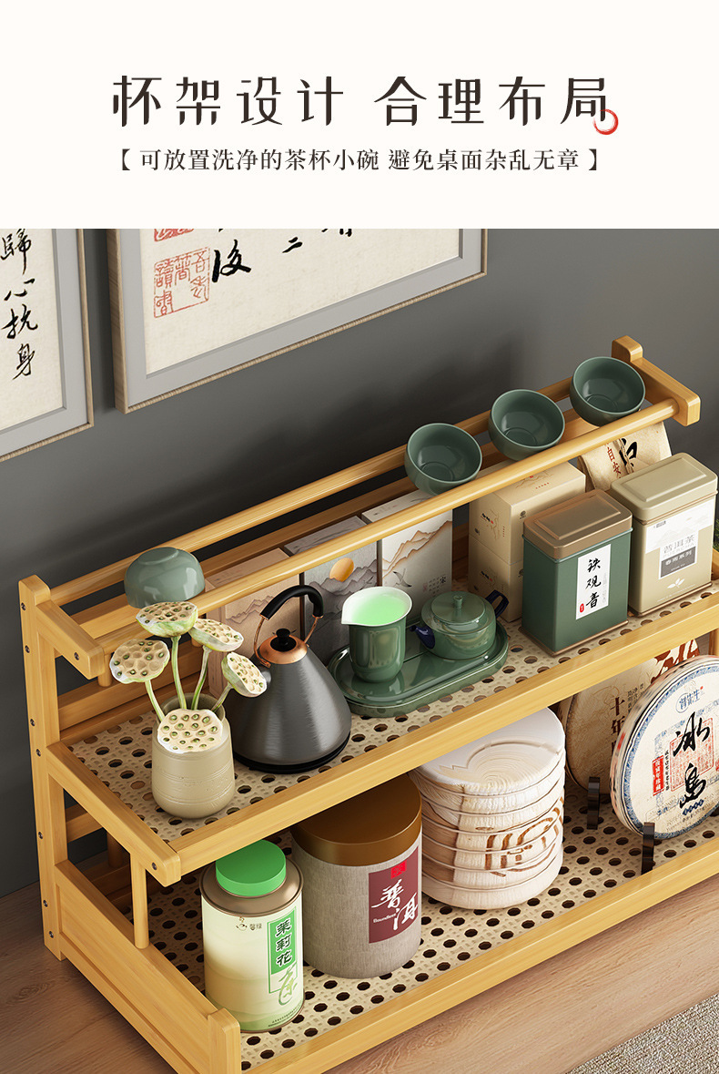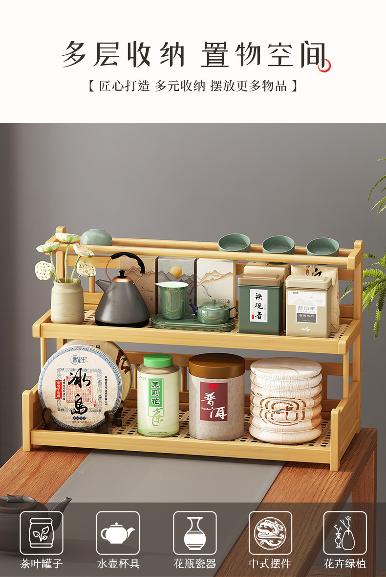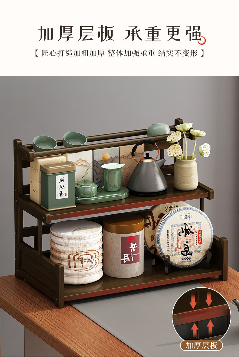 新しい中国風のティーカップホルダーデスクトップボーグラックシンプルな多層ティーセット小さなティーポット装飾品収納ラック