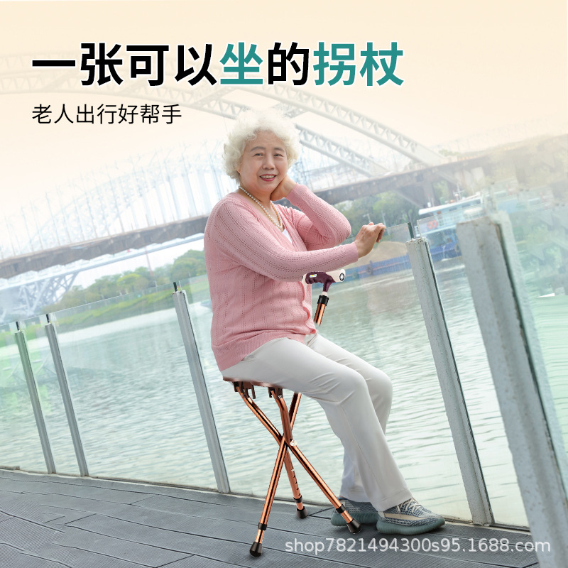 高齢者用ステッキスツール、軽量滑り止めステッキ、四本足ステッキ、折りたたみ式、多機能、座れる、落下防止、高さ調節可能