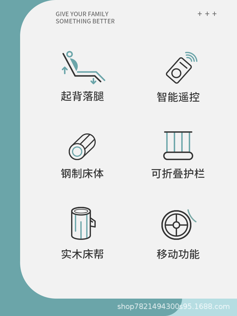 家庭用高齢者向け電動介護ベッド、寝返り・排尿ができる多機能麻痺患者・高齢者用医療用ベッド