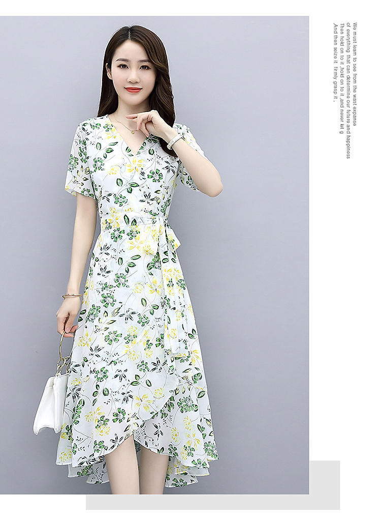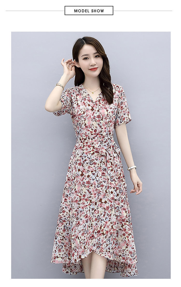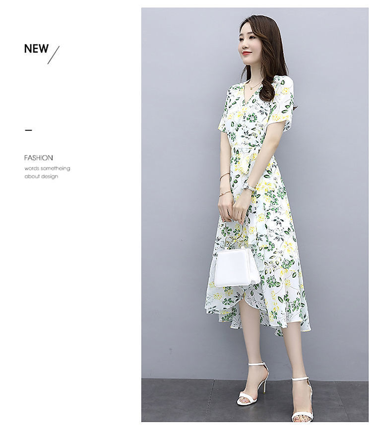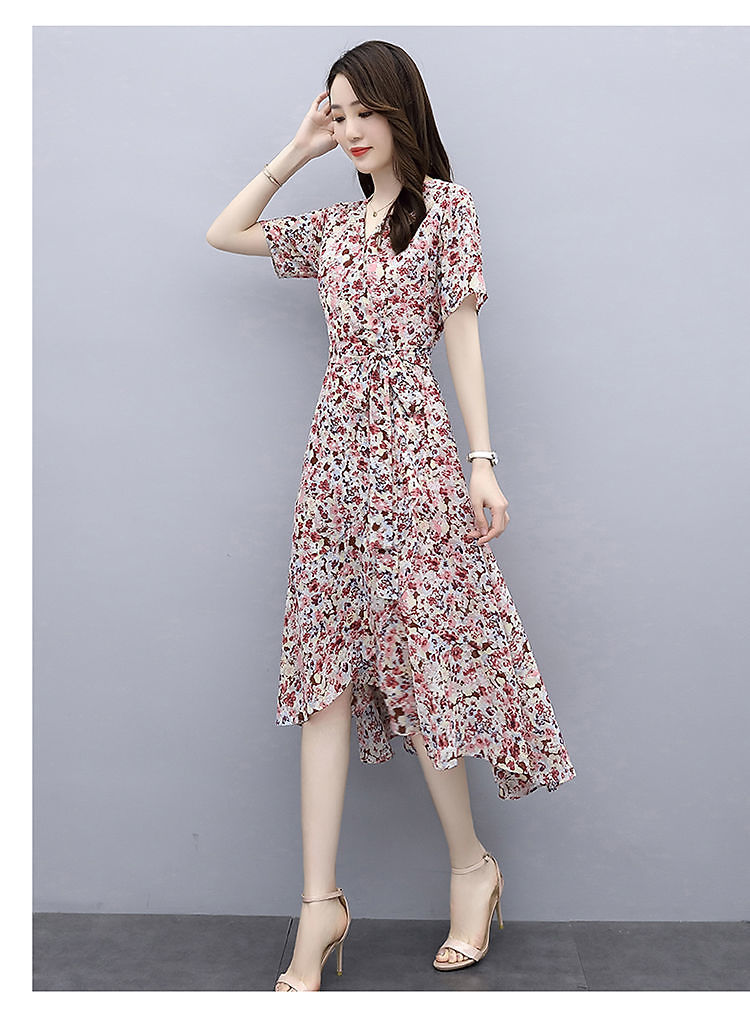 ワンピース女性夏2025新型港味気質修身シフォンプリント中長スカート冷淡風優しいスカート仙