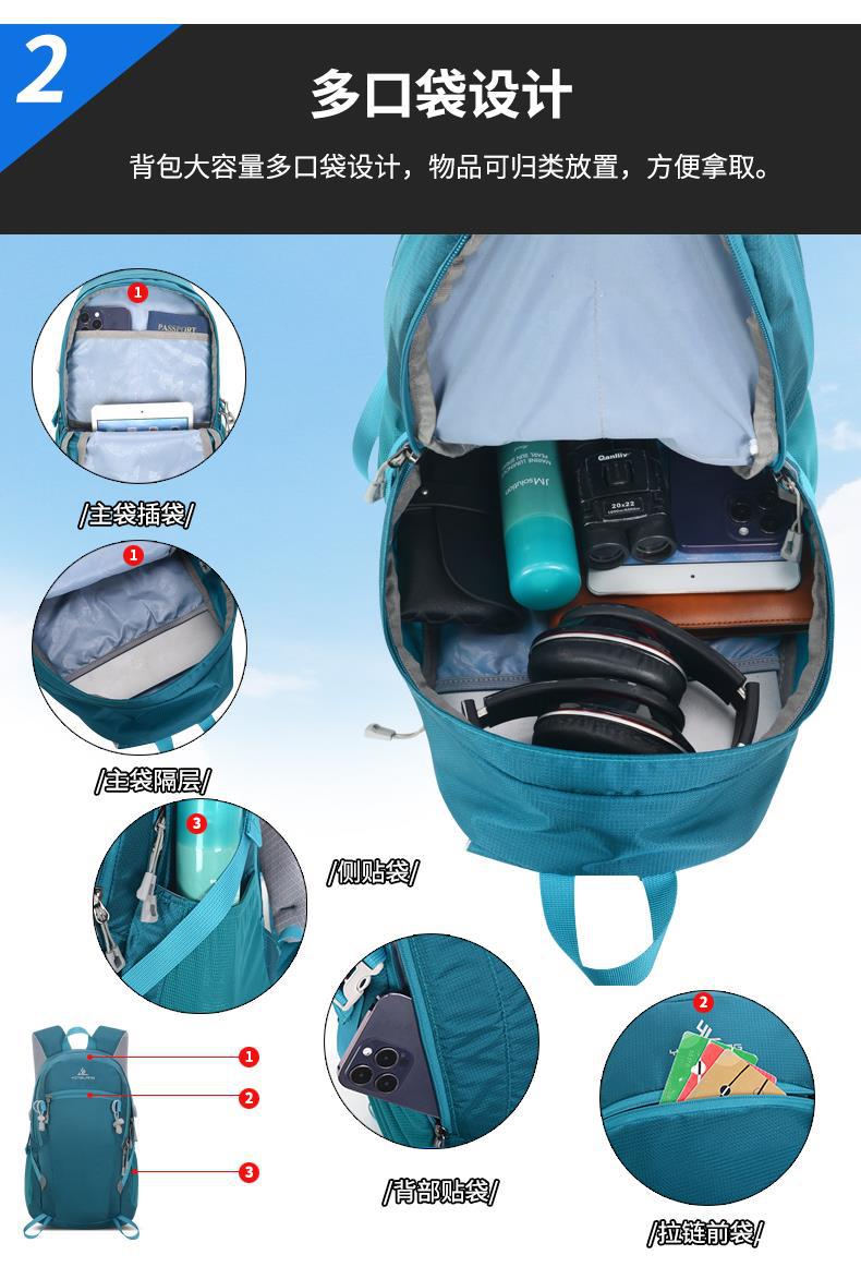 。 アウトドアスポーツバックパック、軽量、ユニセックス旅行バックパック、登山旅行、多機能レジャーハイキングバックパック