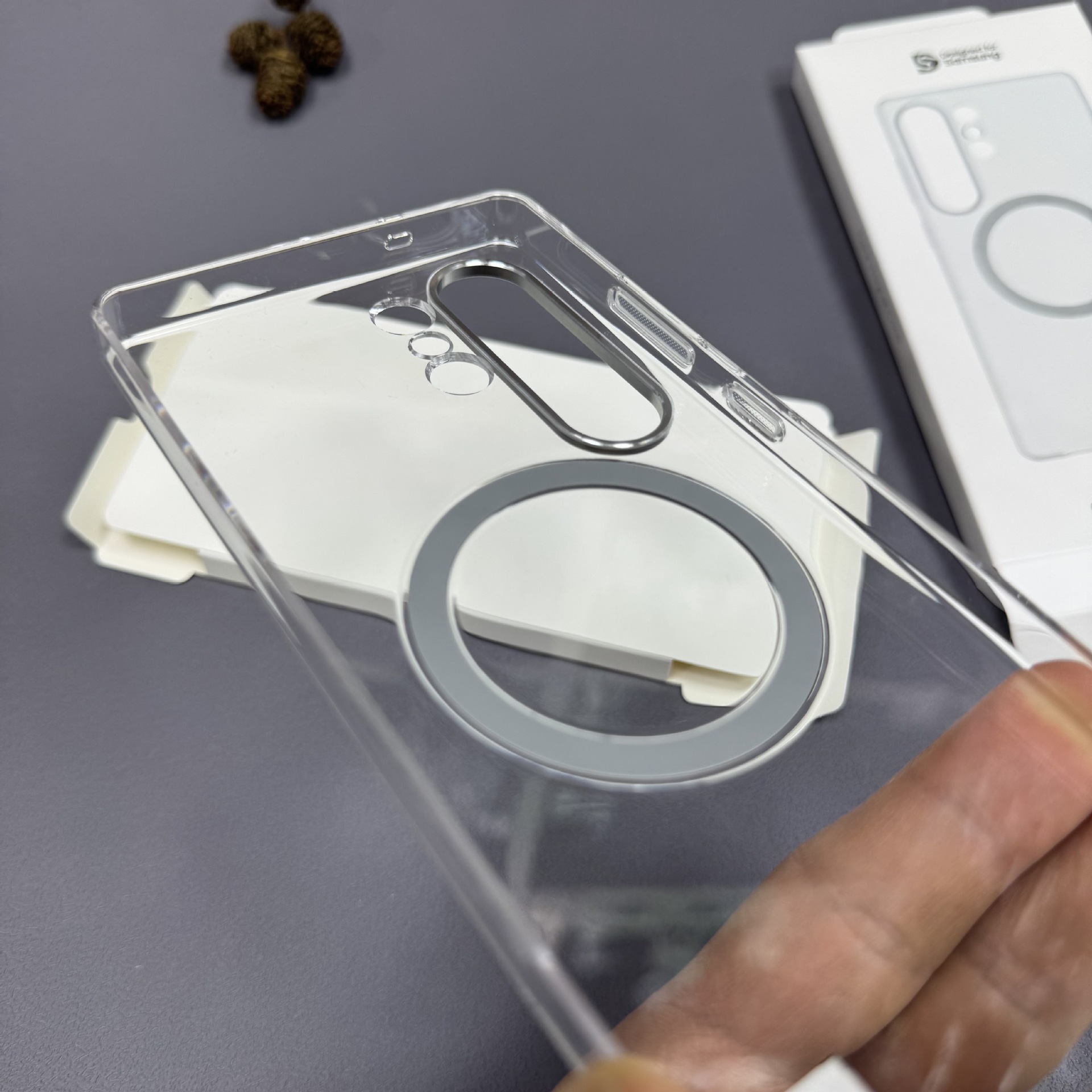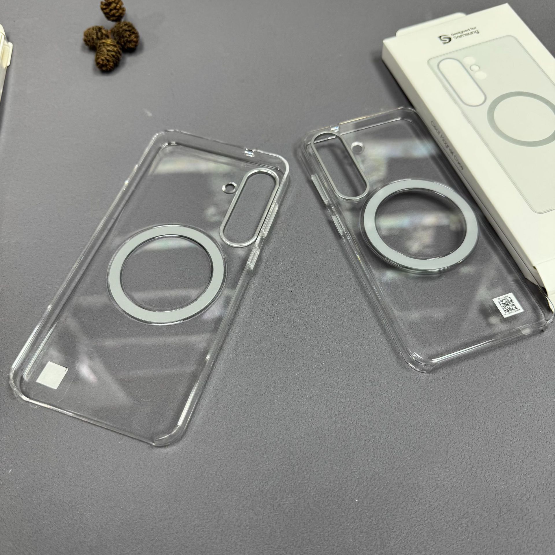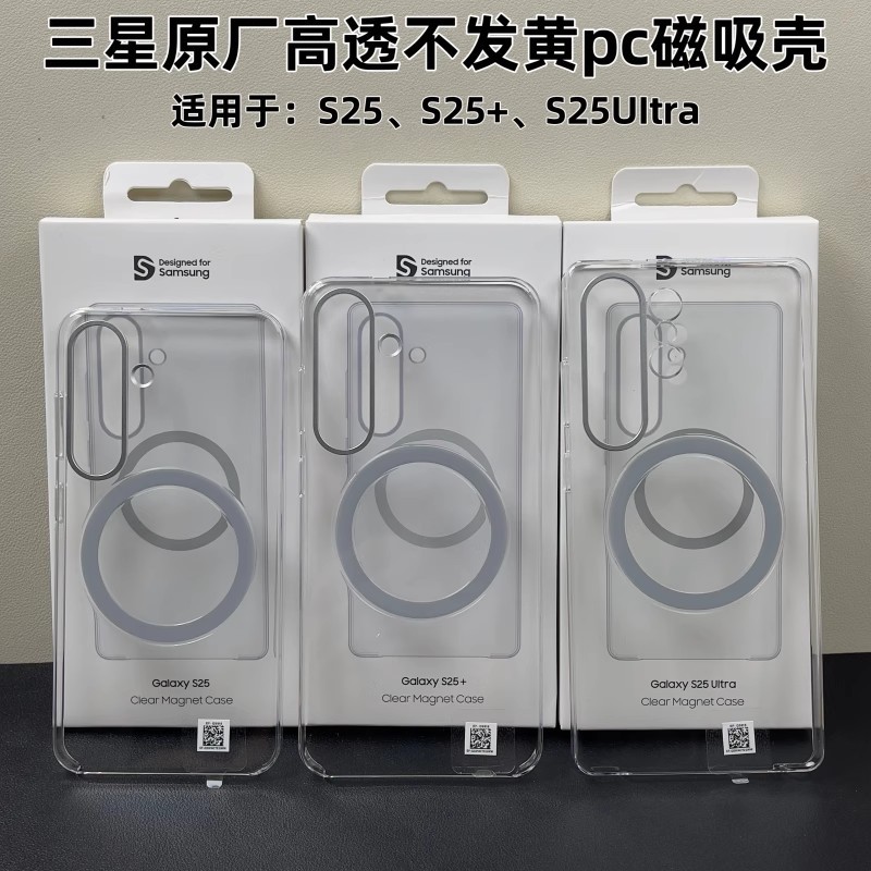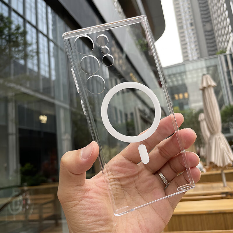 Samsung s25ultra 携帯電話ケースに適しています磁気透明 s25+PC 高透明非黄変ハーフパック落下防止保護ケース