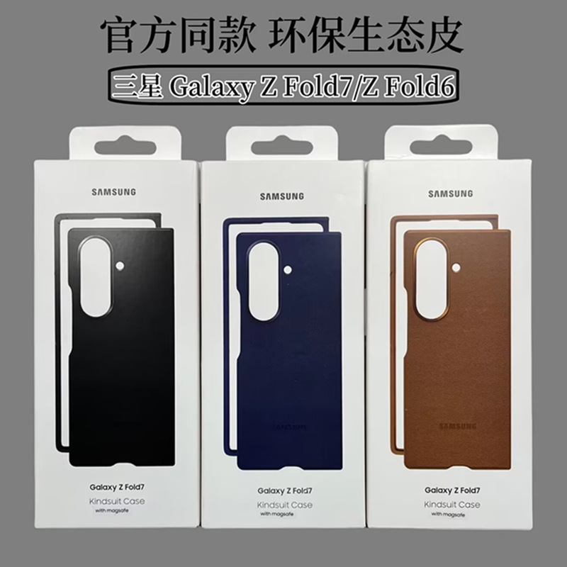 适用三星ZFold7磁吸皮革手机壳素皮革GalaxyZFold7折叠防摔保护套