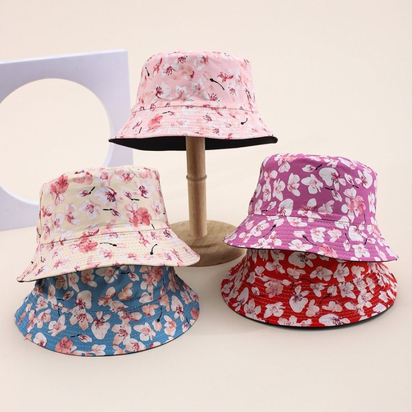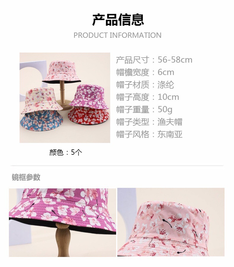クロスボーダーヨーロッパとアメリカの小花プリントフィッシャーマンハット春と夏の屋外日よけ日よけ帽子カップル両面盆地帽子女性用