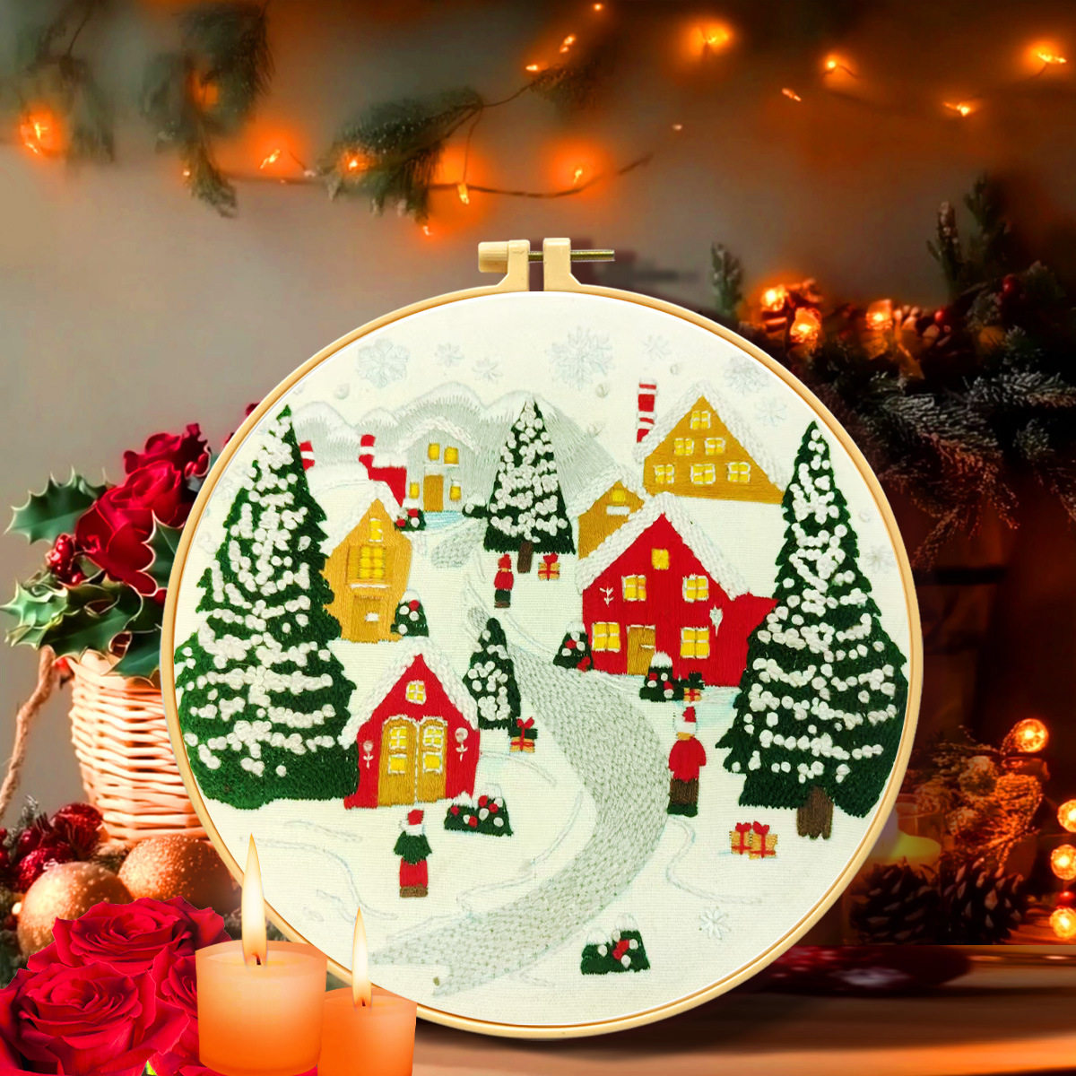 クリスマス暖炉 [29x29cm] 購入すると、刺繍用の無料の丸い刺繍担架 [20×20cm] が付属します。,クリスマス雪原 [29x29cm] 刺繍を購入すると、丸刺繍担架 [20×20cm] を入手できます,クリスマス松葉杖 [29x29cm] を購入すると、刺繍入りの無料ラウンド刺繍担架 [20×20cm] が付属します。,赤い実の小さな鈴[29x29cm]を購入して刺繍すると、丸い刺繍担架[20×20cm]がもらえます。