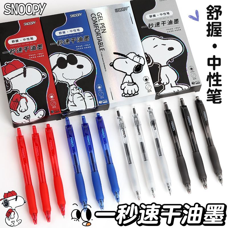 史努比中性笔0.5mm水笔黑色水性笔签字笔办公学生用考试专用刷题