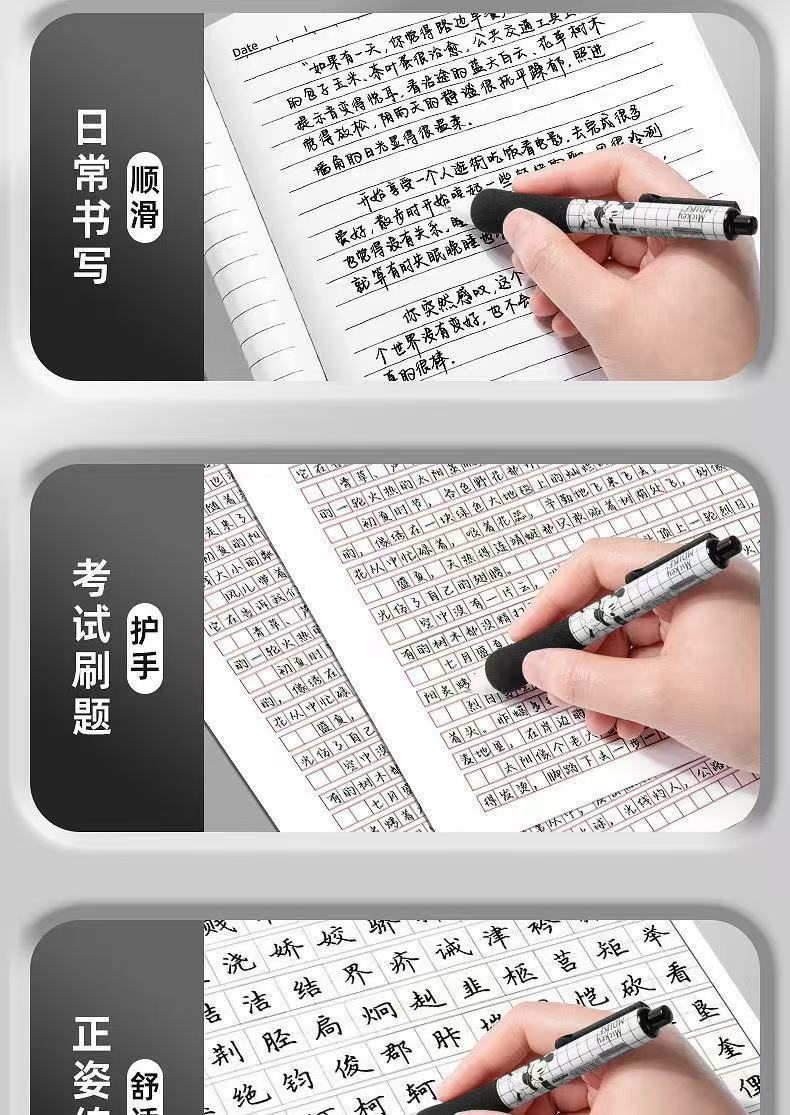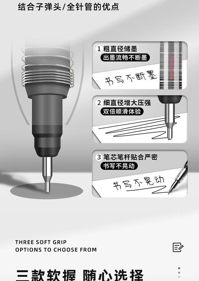 新款学生做笔记专用红蓝黑三色彩色笔芯0.5mm舒握直液式中性笔