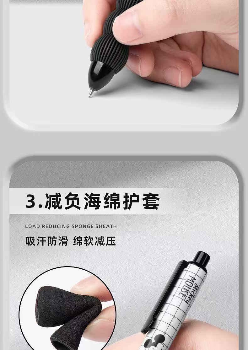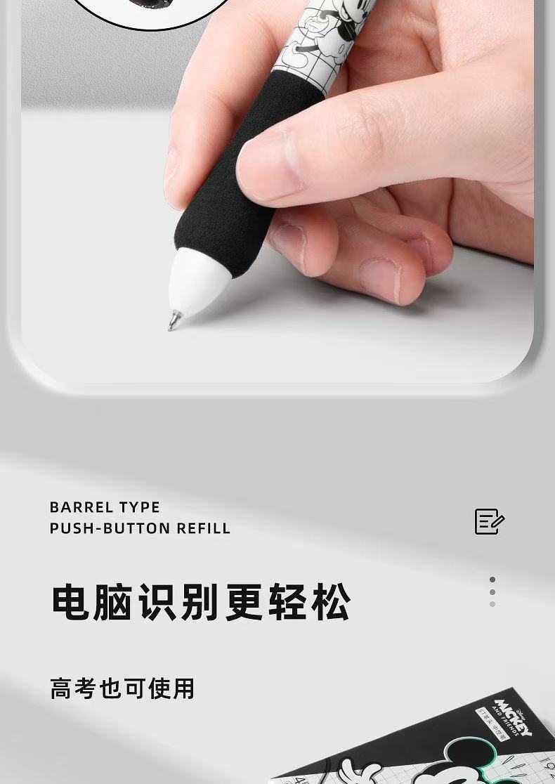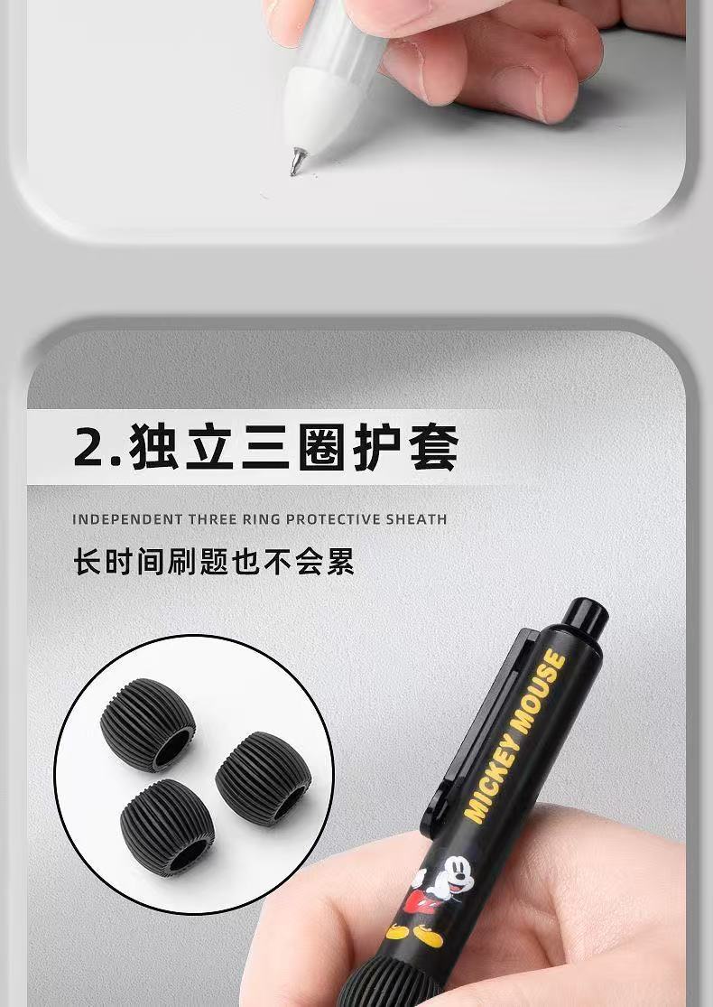 正版授权米奇米妮云握胶中性笔 黑色按动刷题笔ST笔头0.5mm速干笔
