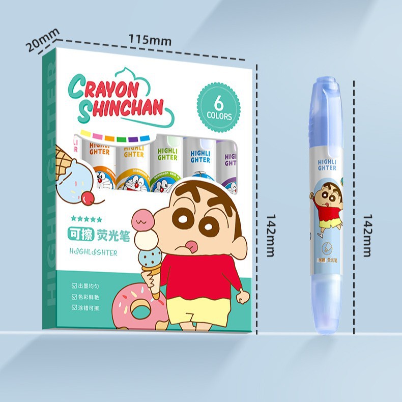 クレヨンしんちゃん 学生シーズン 双頭蛍光ペン 拭ける 新限定マーカー 高価値で可愛い文具