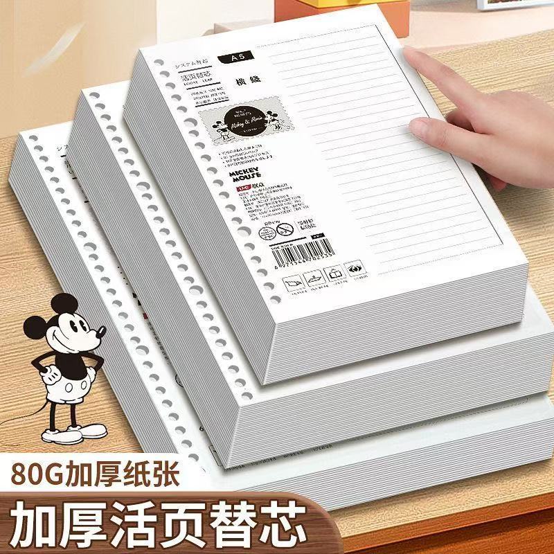 源头工厂米奇替芯B5加厚26孔活页纸方格横线高颜值厂家直销A5批发
