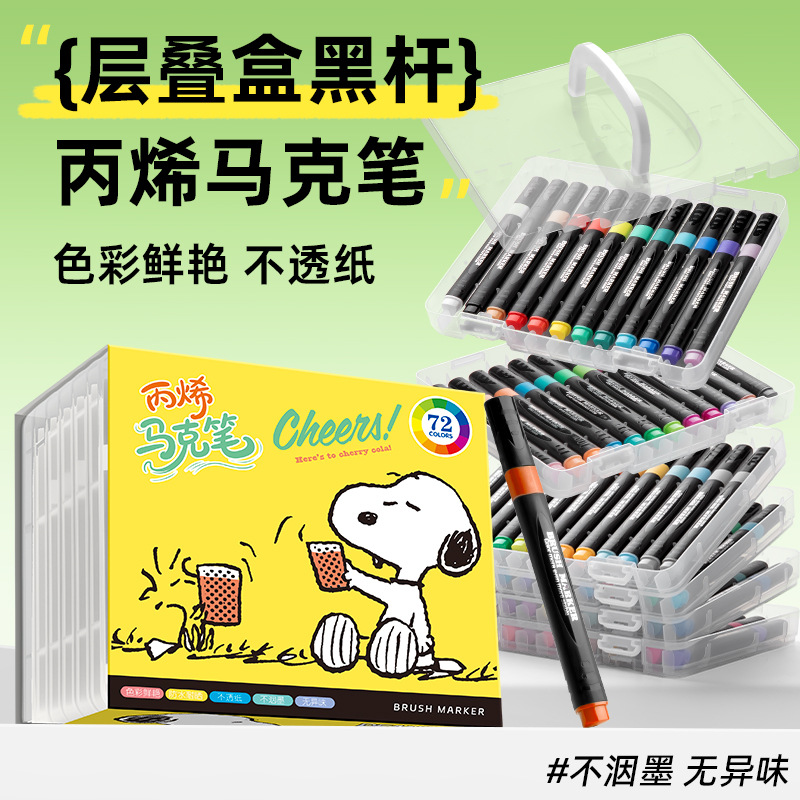本物のソフトヘッドアクリルマーカーブラックボックス学生特別アート環境に優しい洗えるカラーペン不透明色積み重ね可能な色