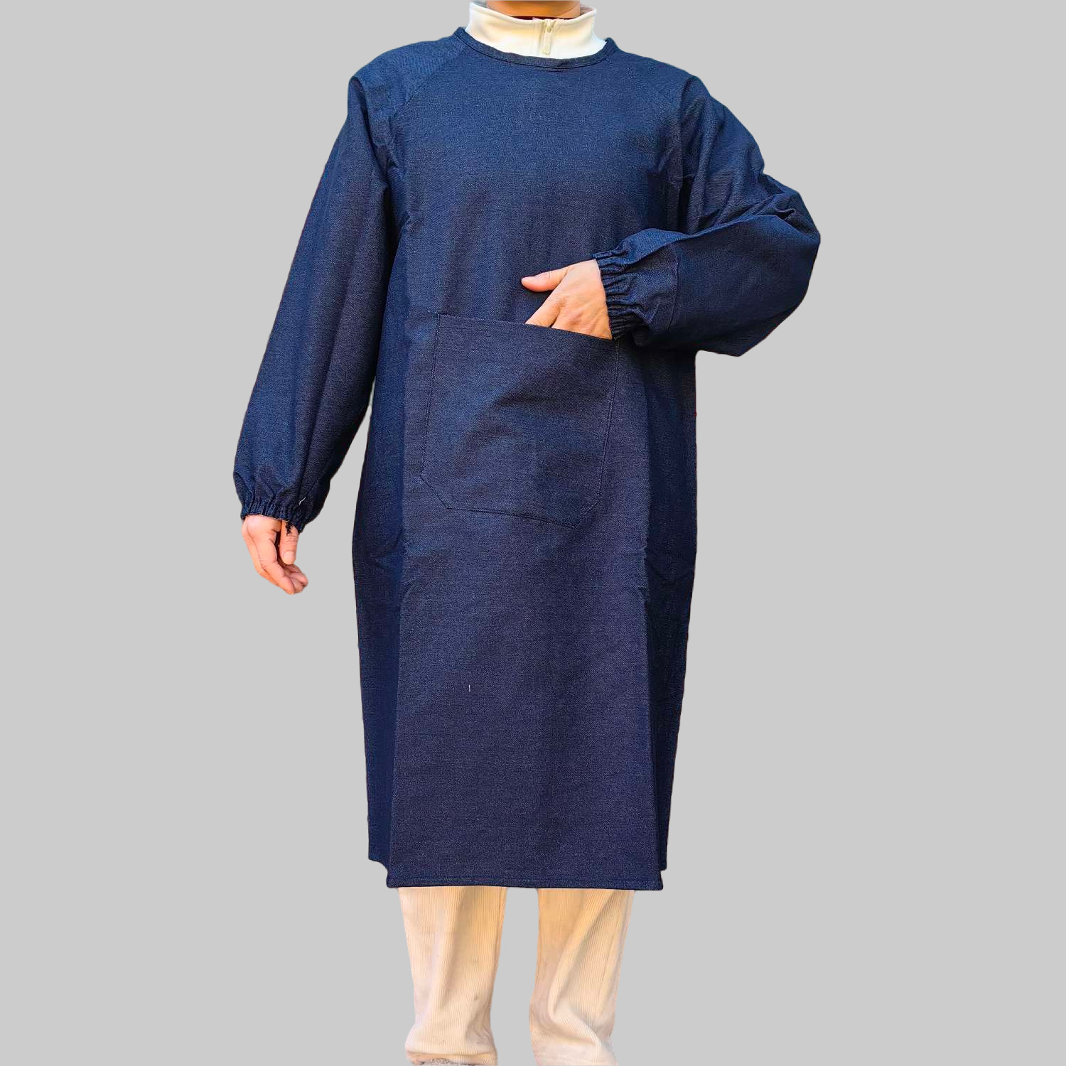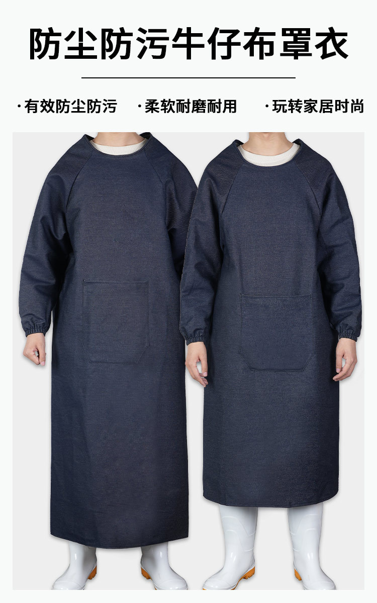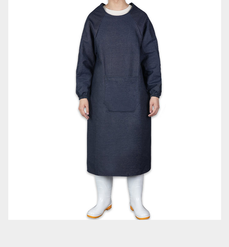 デニムスモックエプロン、長袖、防汚、耐摩耗性、厚手の作業服、防汚、運搬、溶接、逆着用、労働保護逆着用ガウン