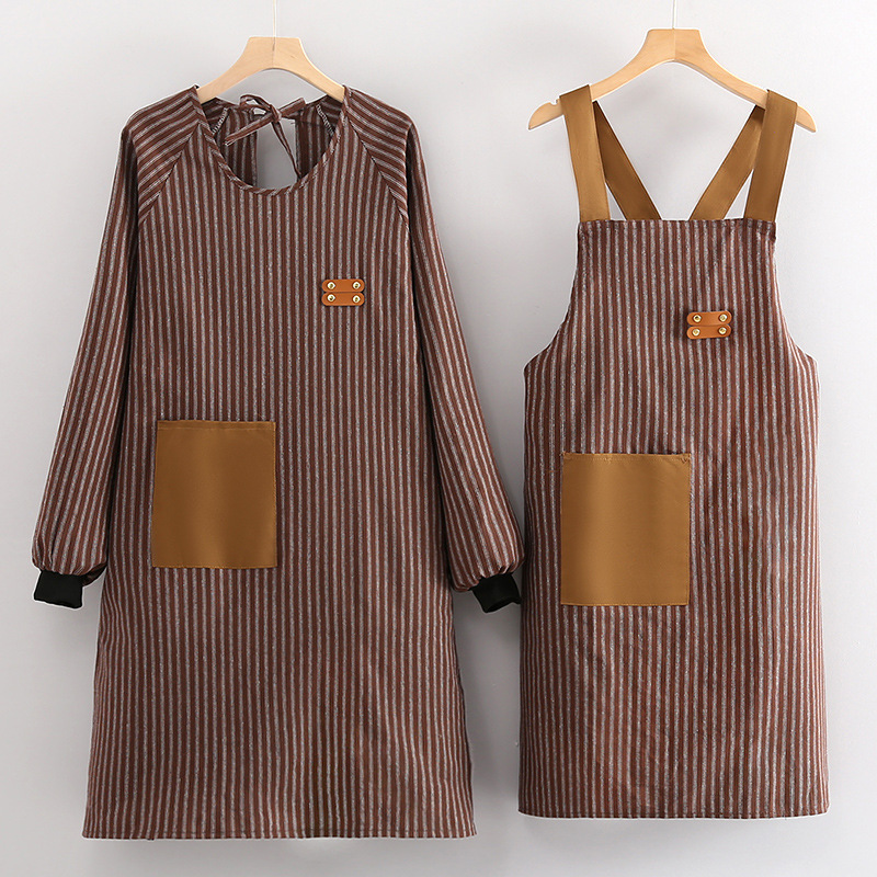 老粗布長袖エプロン耐摩耗性出勤カバー女性男性家庭用キッチン加肥大人作業服反着