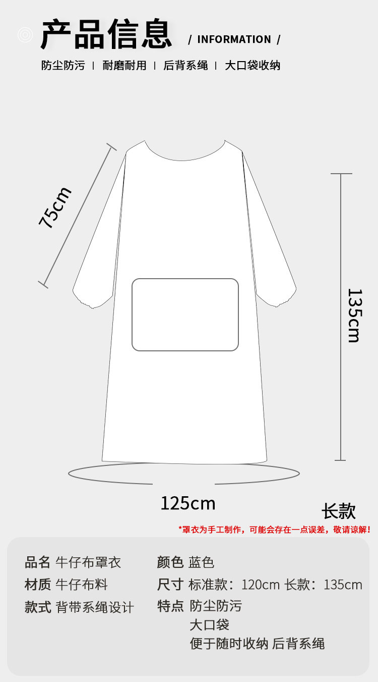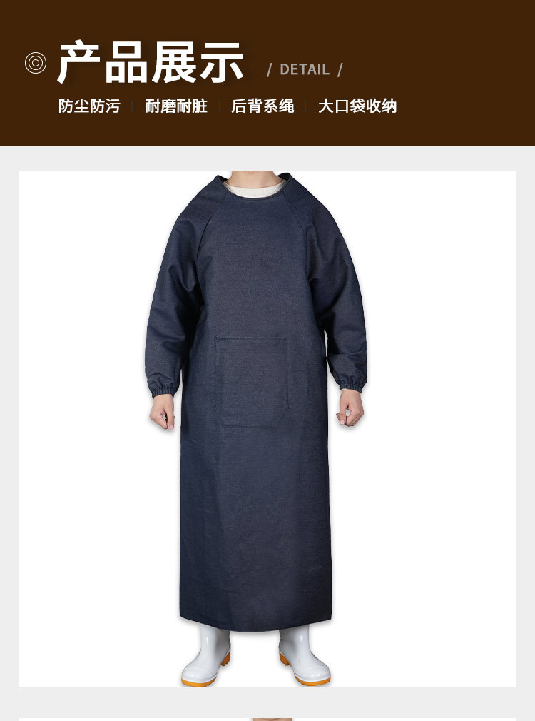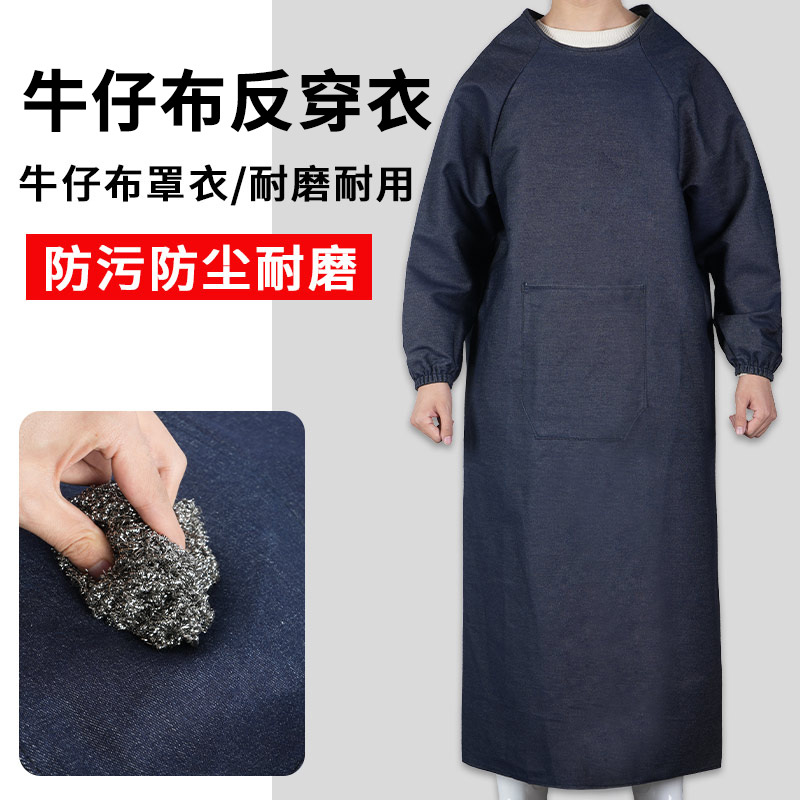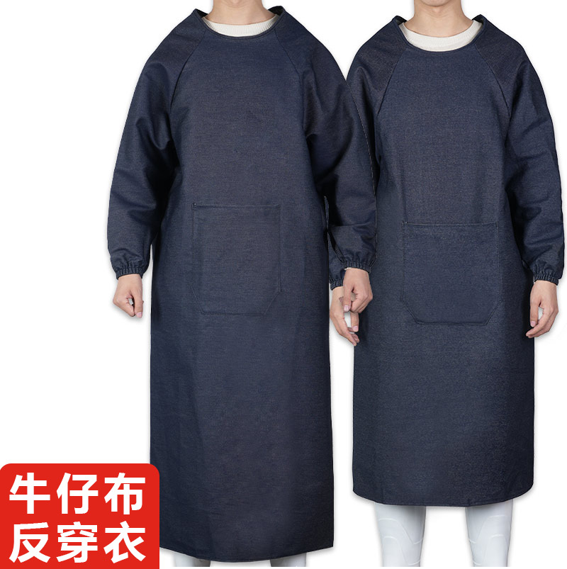 牛仔布罩衣围裙长袖焊工加长防污脏耐磨加厚工作服搬运反穿衣倒褂
