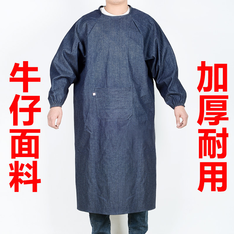 牛仔布罩衣围裙长袖防脏耐磨厚工作服防污搬运电焊反穿衣劳保倒褂