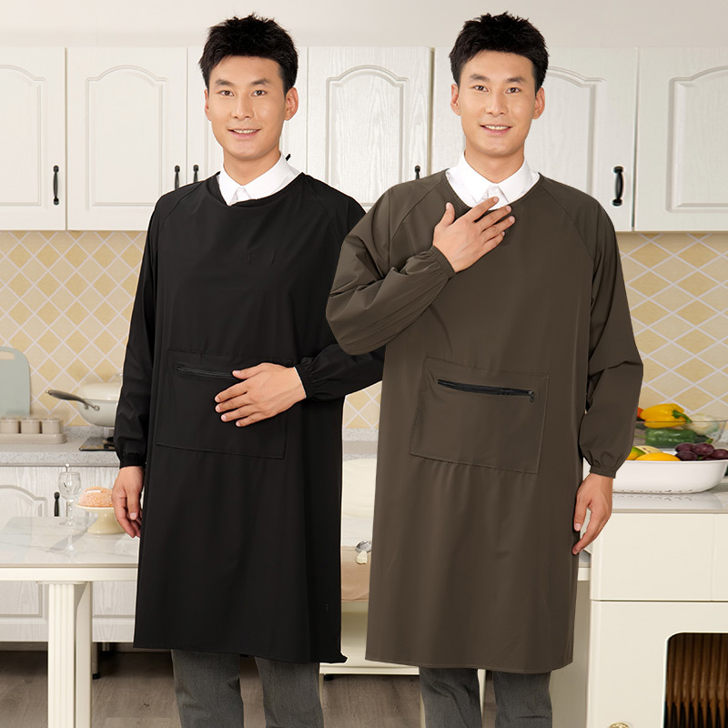 メンズ逆着用スモック新しい長袖キッチン家庭用エプロン防水耐油作業服大人のロゴ印刷