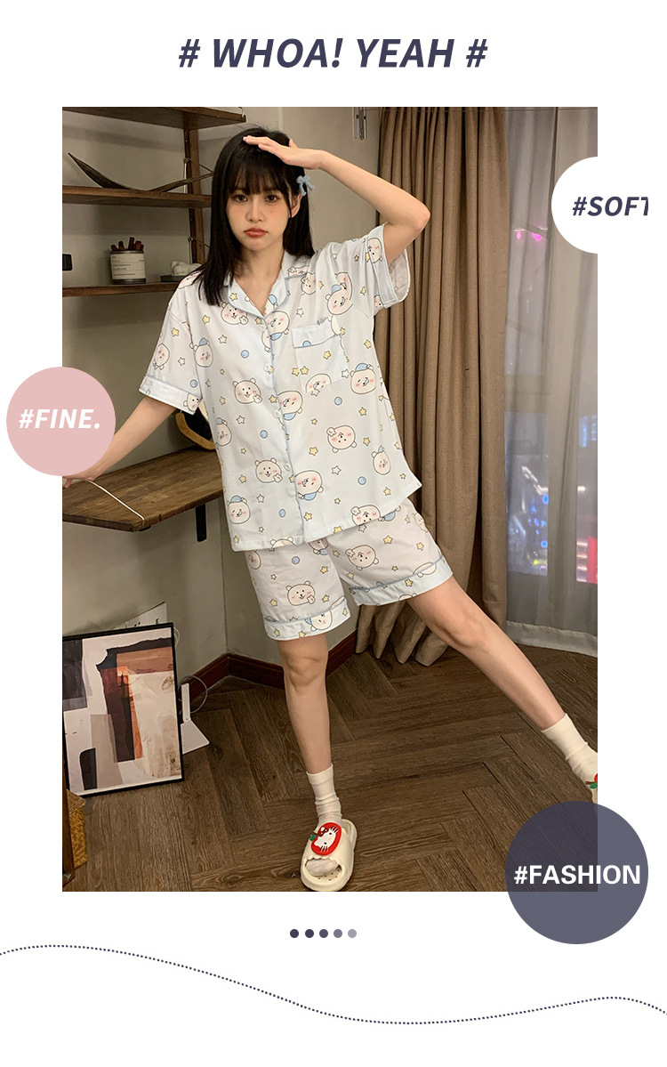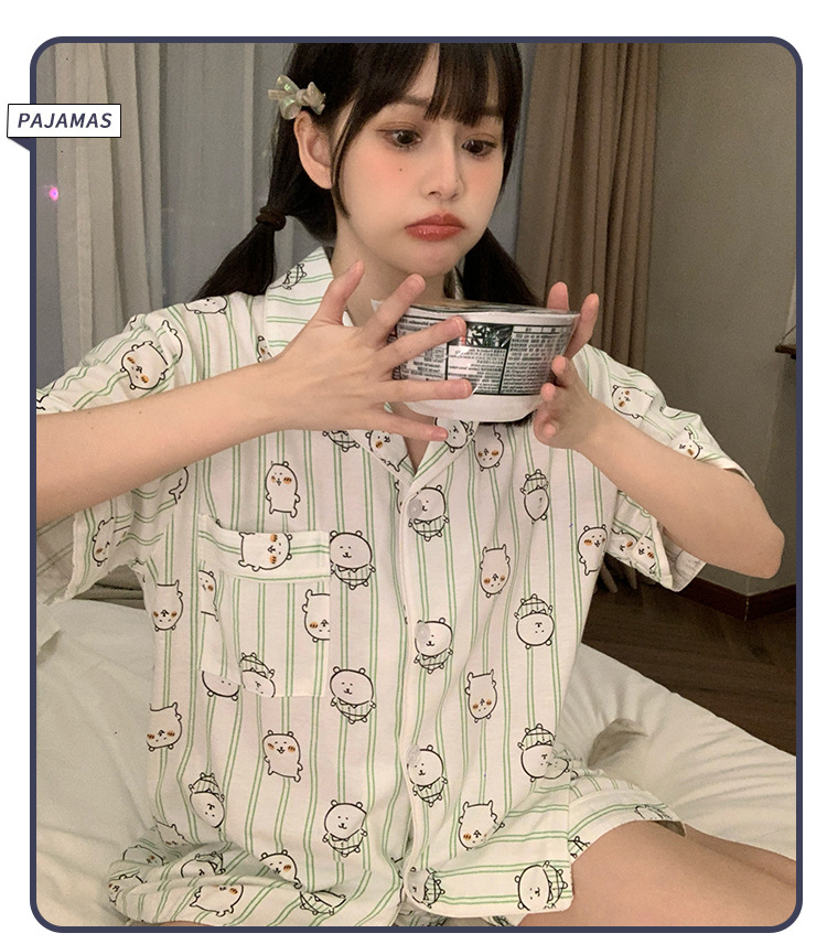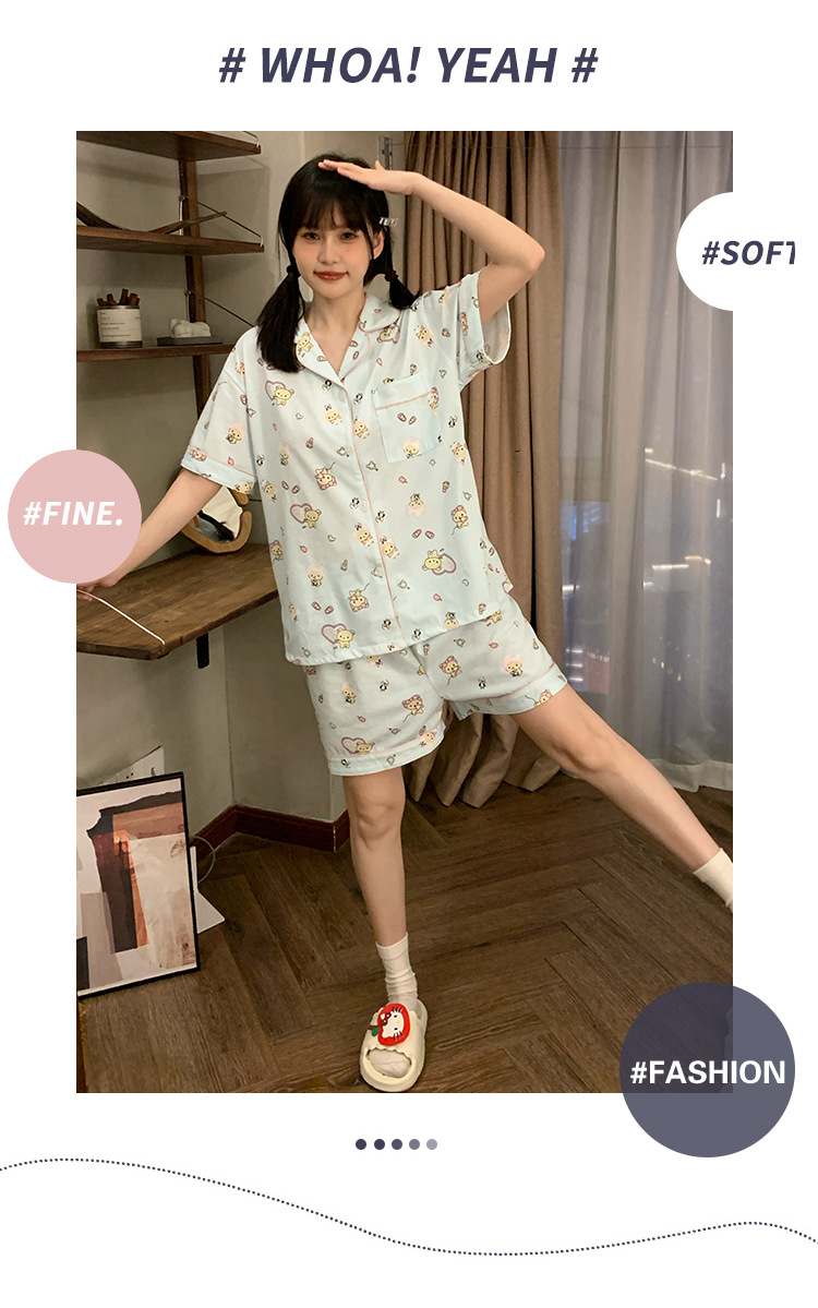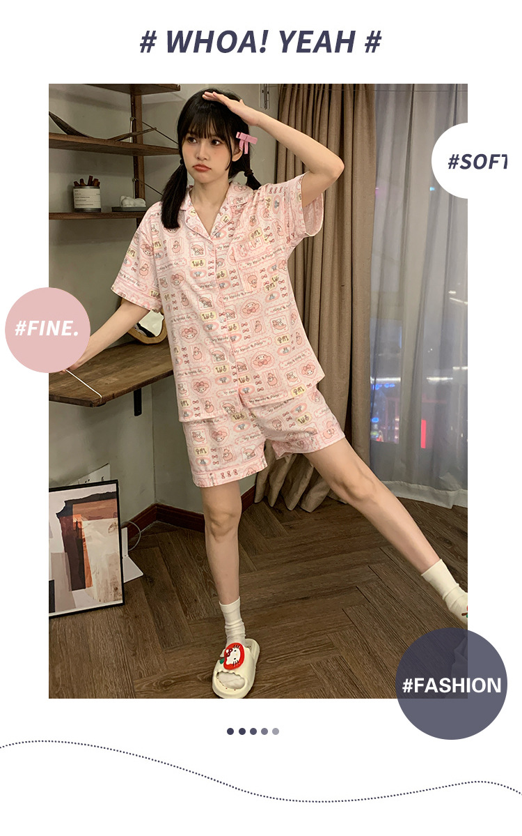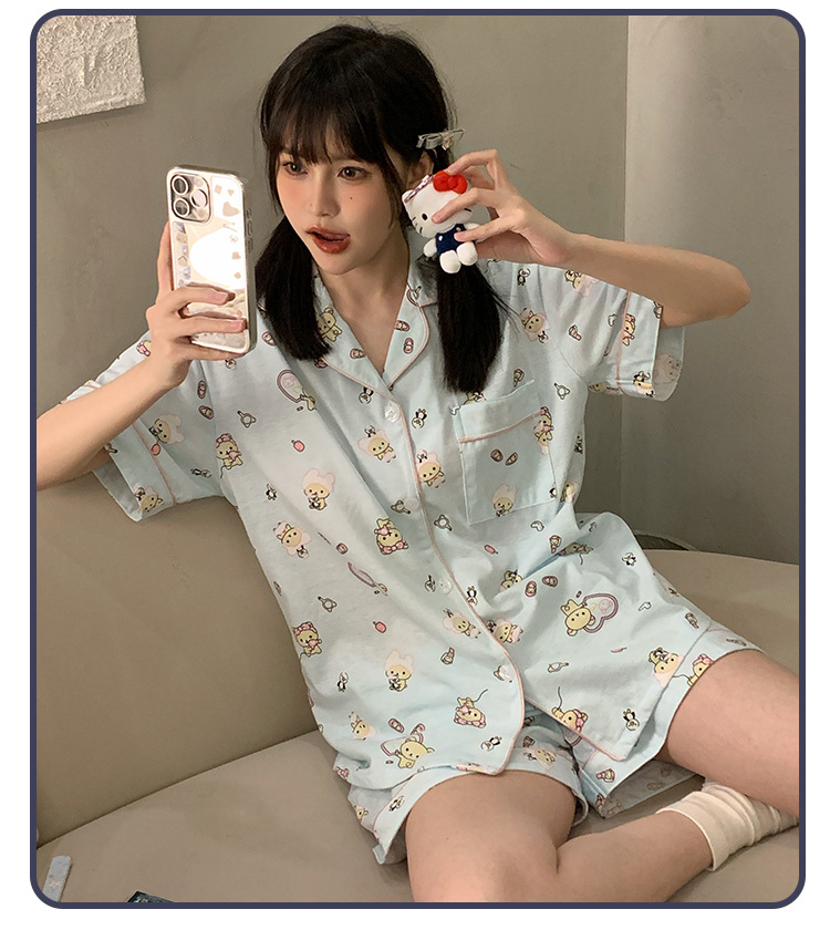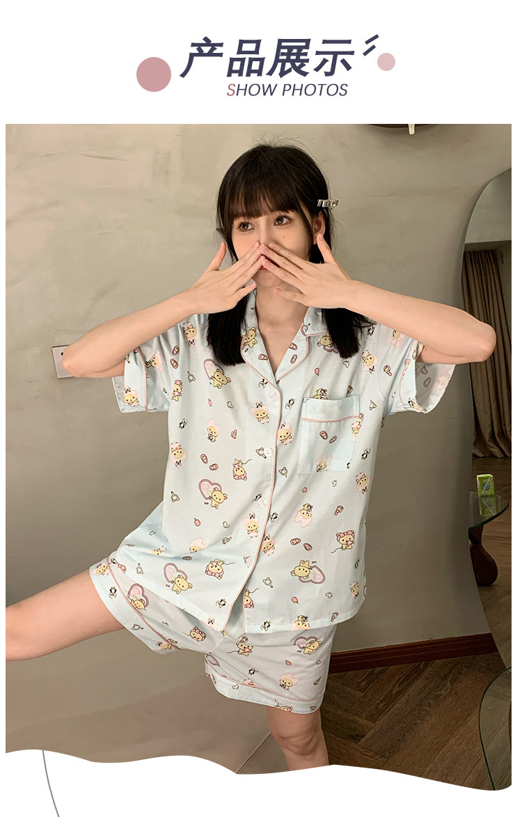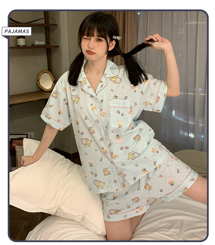 日系insパジャマ女性夏純綿半袖半ズボンアニメかわいい少女ホームウェア2点セット